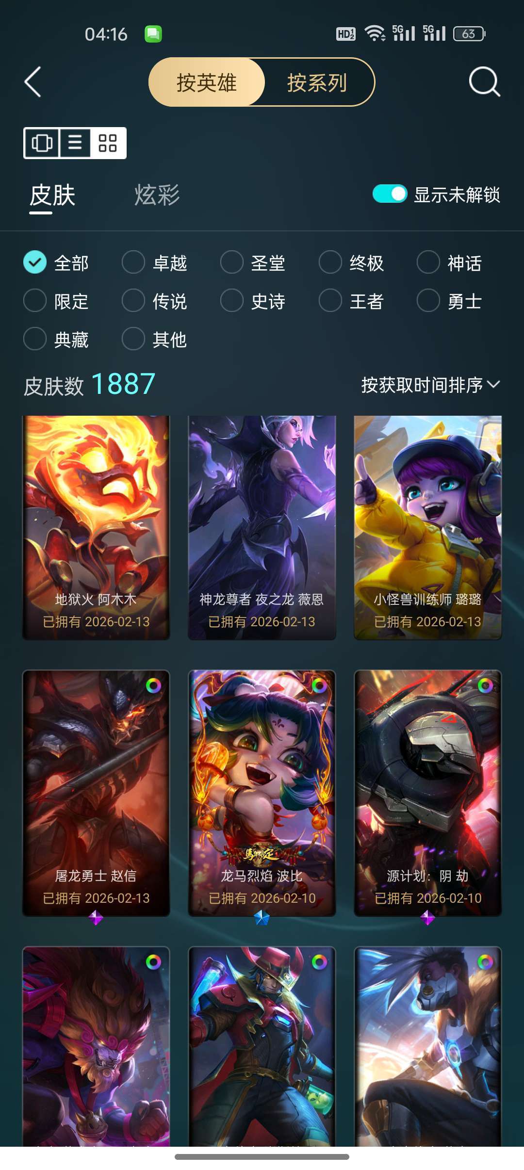 一区无段位炸鱼新号,未进行10场匹配暂未开启排位,全英雄100皮,神王诺手星守霞等