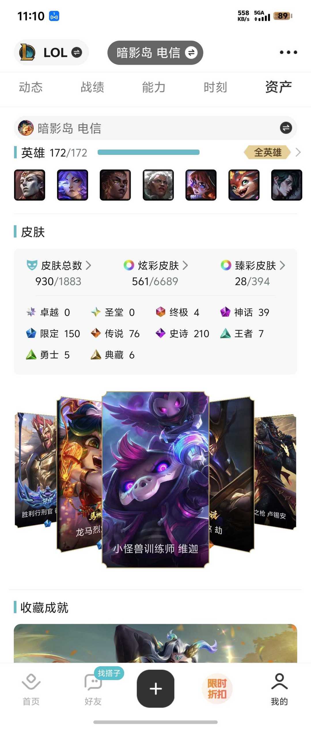 1491皮肤,44至臻KDA,海克斯神话,年限冠军卧虎藏龙,地底世界。各种稀有限定典藏,