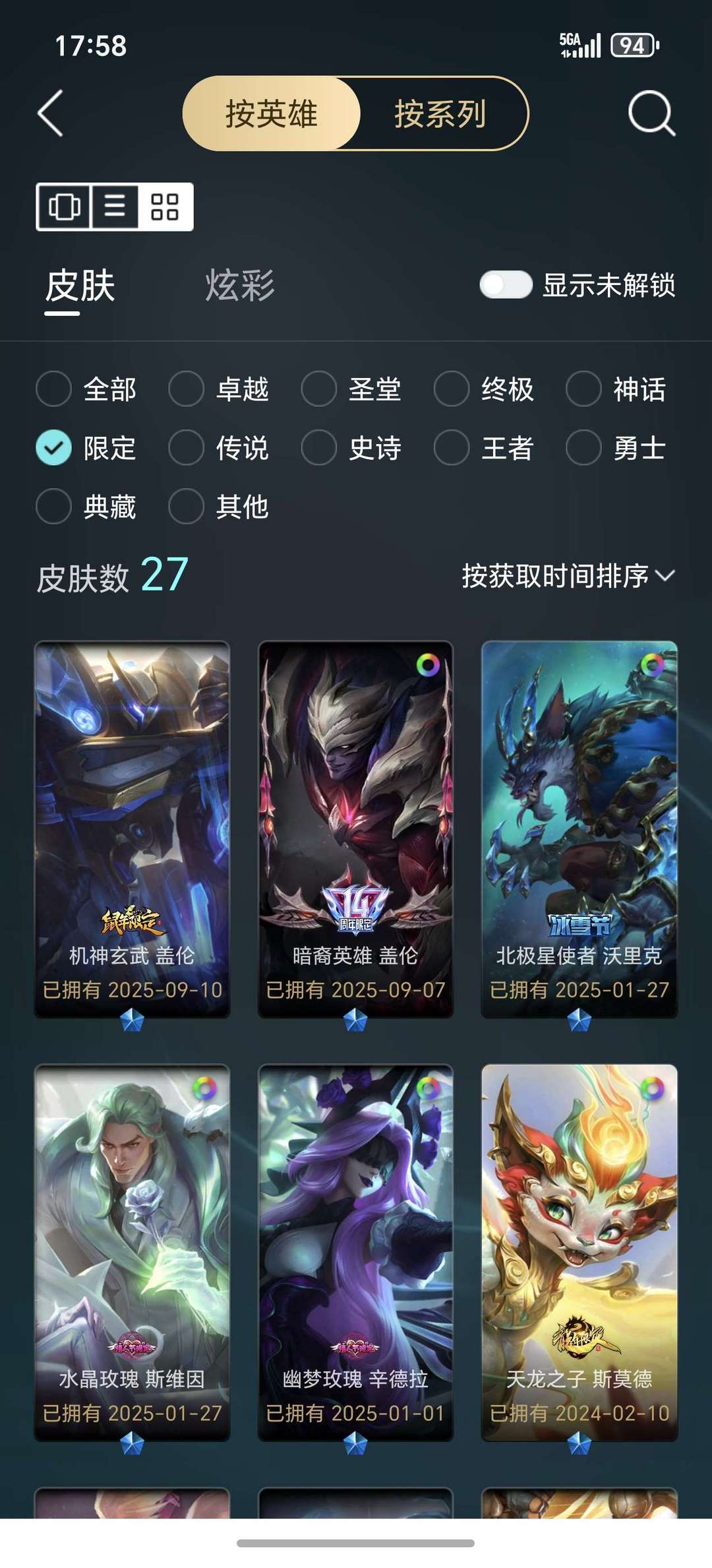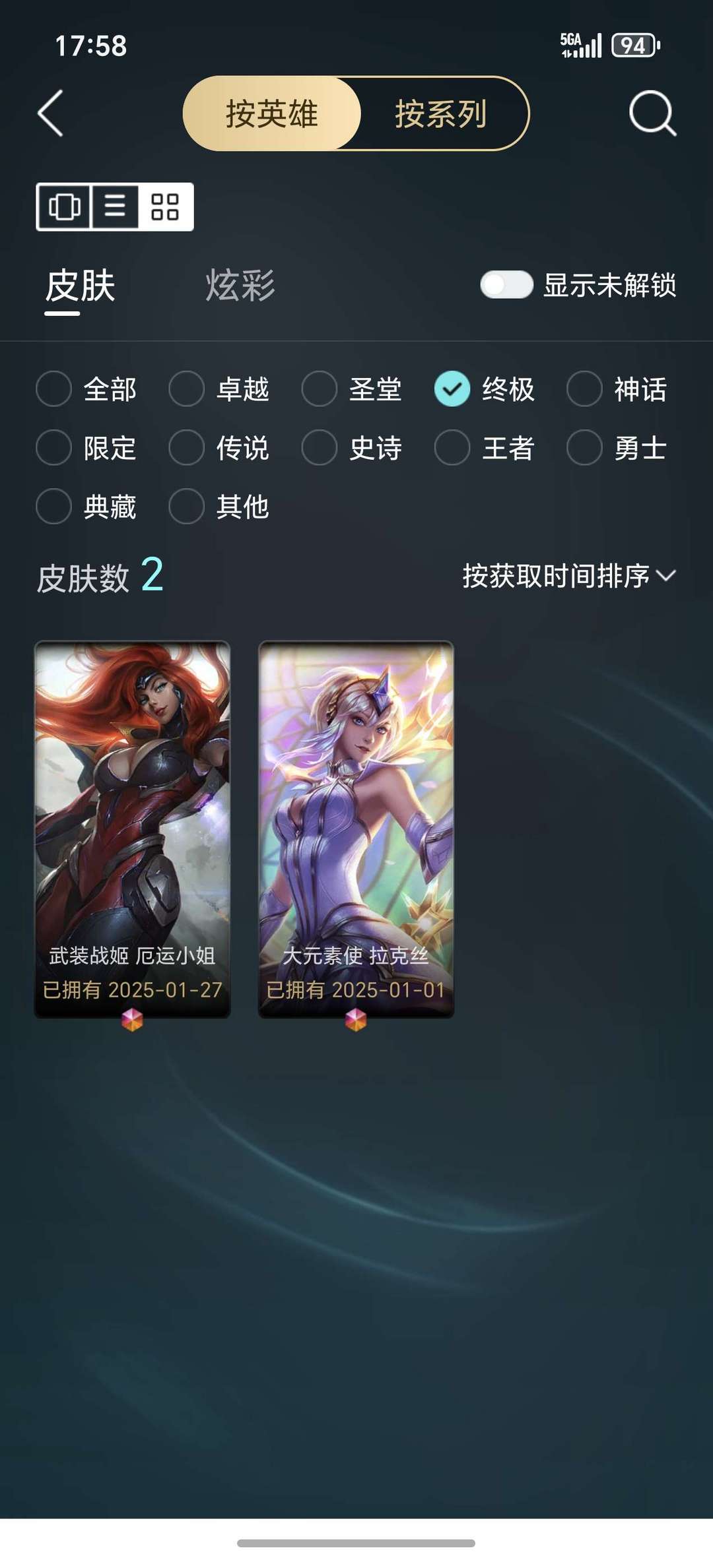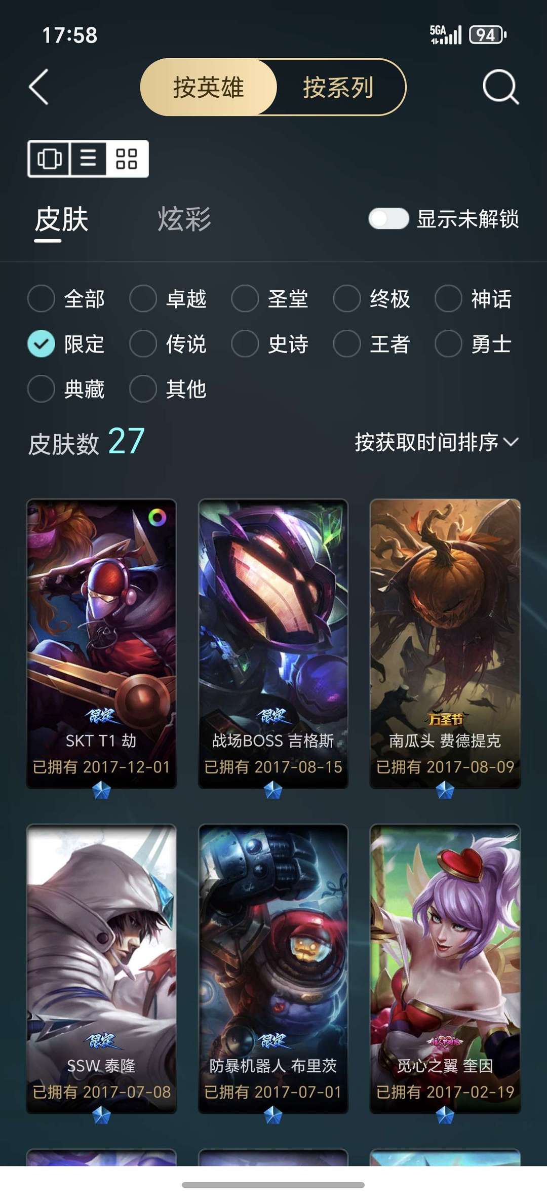彩虹马,大天使拉克丝,武装战姬,海克斯鳄鱼,美猴王孙悟空,还有一些好皮肤