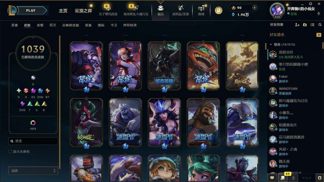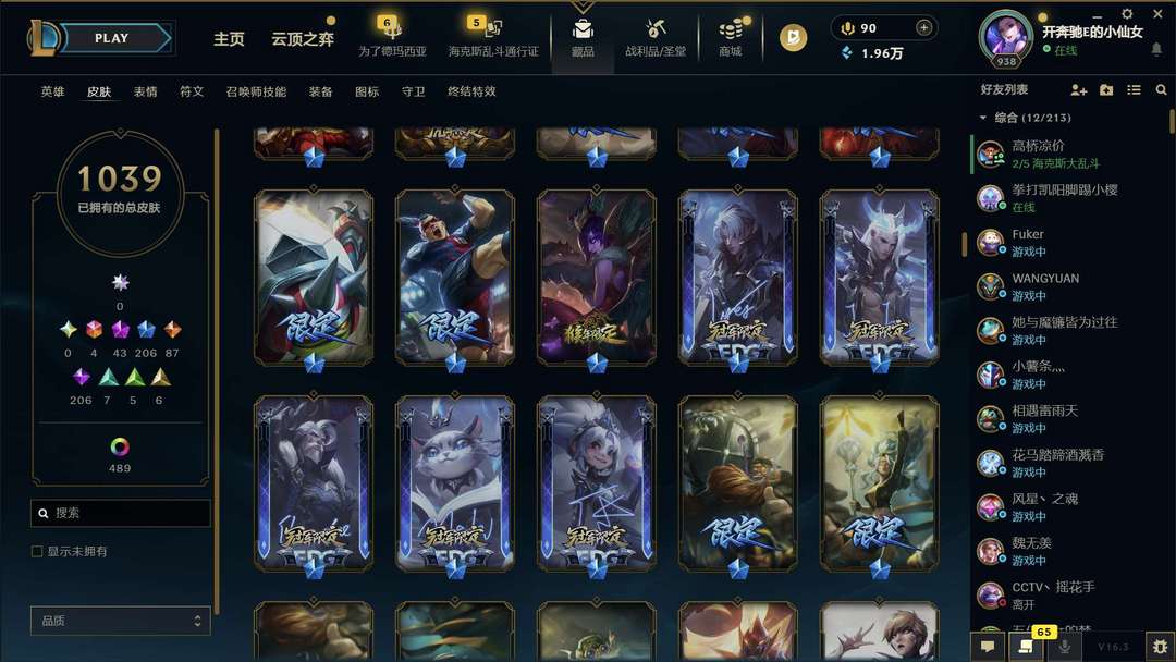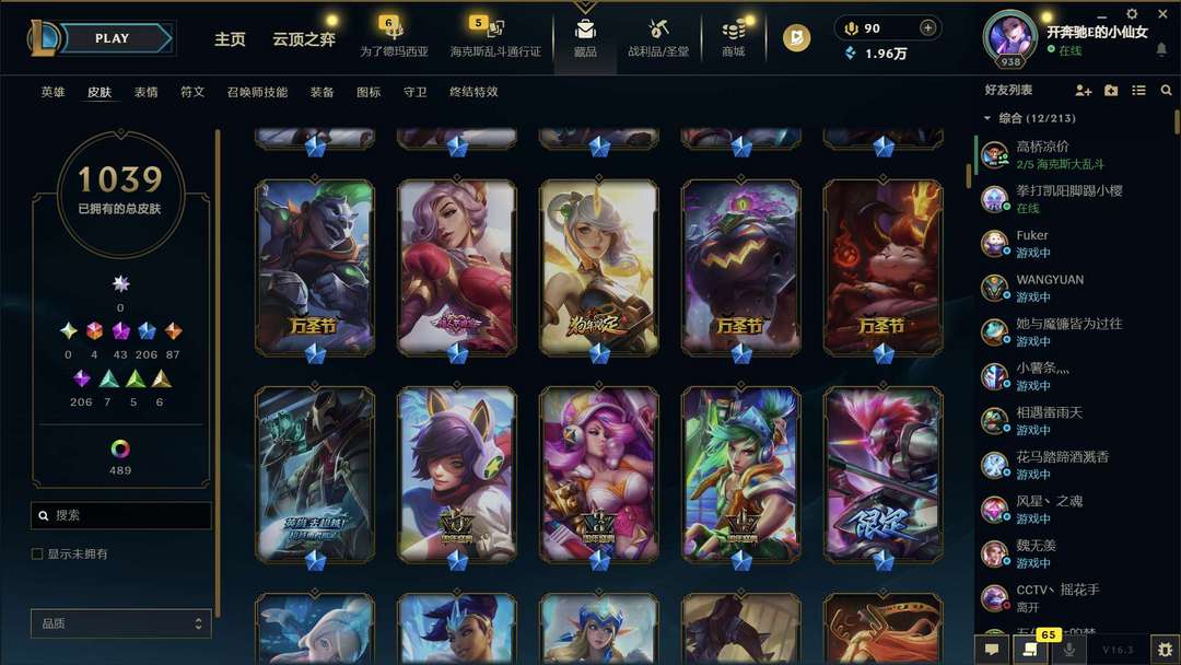 比尔吉沃特妹子号 全英雄,1039皮肤 图片上有皮肤,宝宝就不介绍啦!