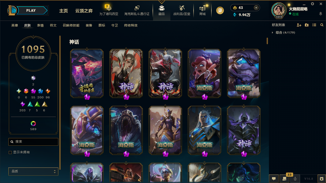 ██ 全英雄 2300皮丨禁止排位丨70神话丨龙瞎丨穿星丨IG套丨FPX套丨青年瑞兹丨殿堂卡莎狐狸