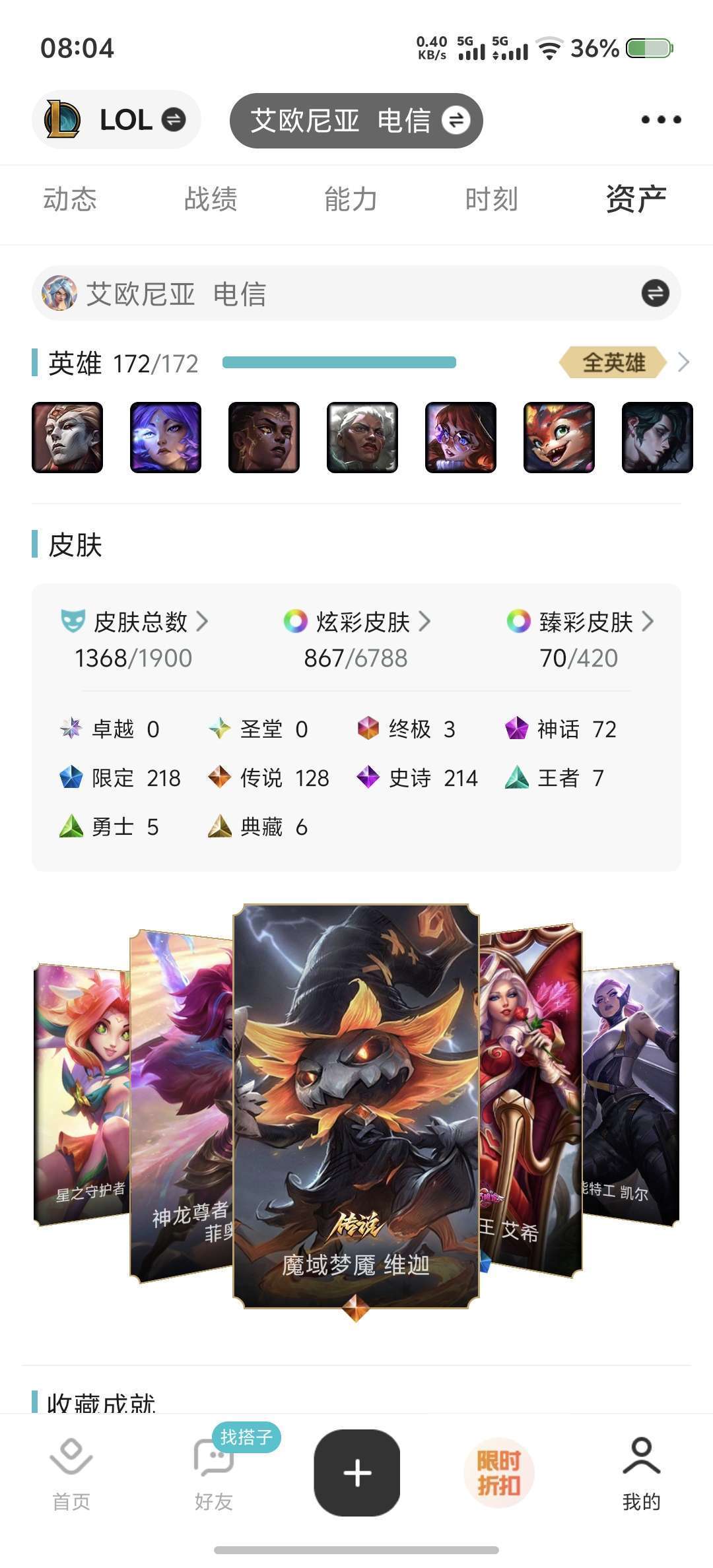 艾欧尼亚 白银 黄金 铂金★全英雄★英雄皮肤1368个★至臻皮肤70个★可排位★异常秒解