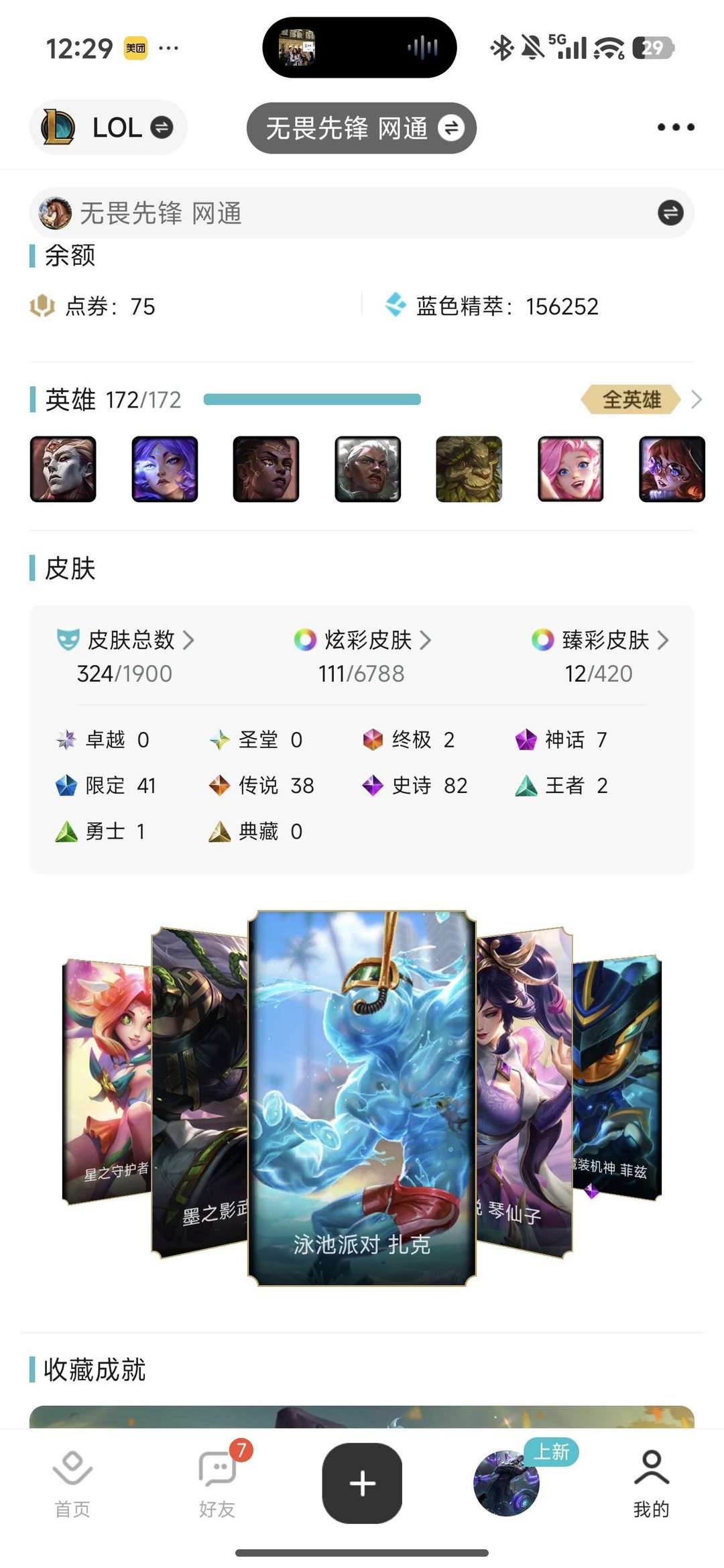 全英雄,300多皮肤,翡翠二,拉克丝大元素使,亚索黑夜使者可玩