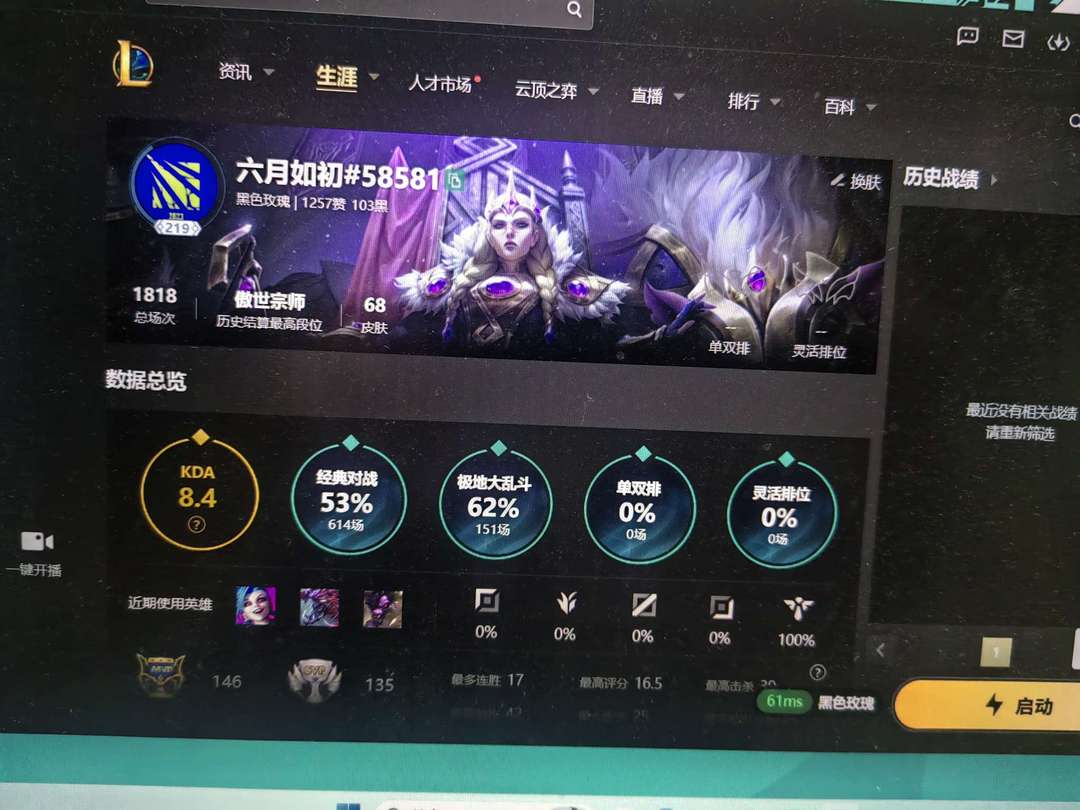 段位:219级 当前赛季无