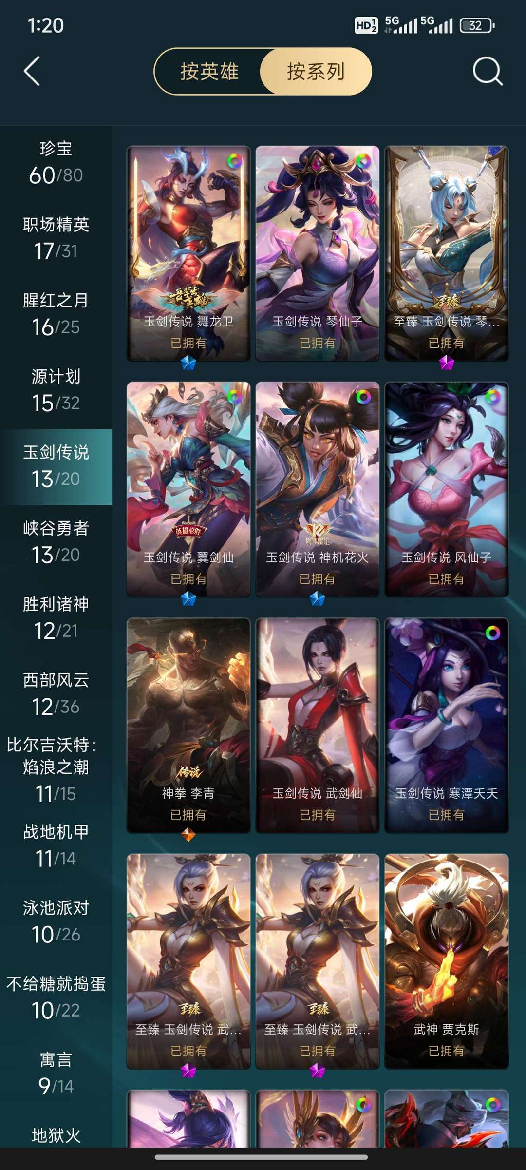 714皮肤,519炫彩,26臻彩,全英雄,77限定,76神话,74传说