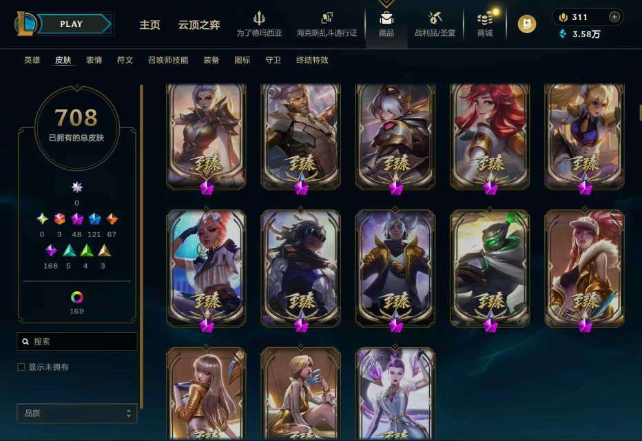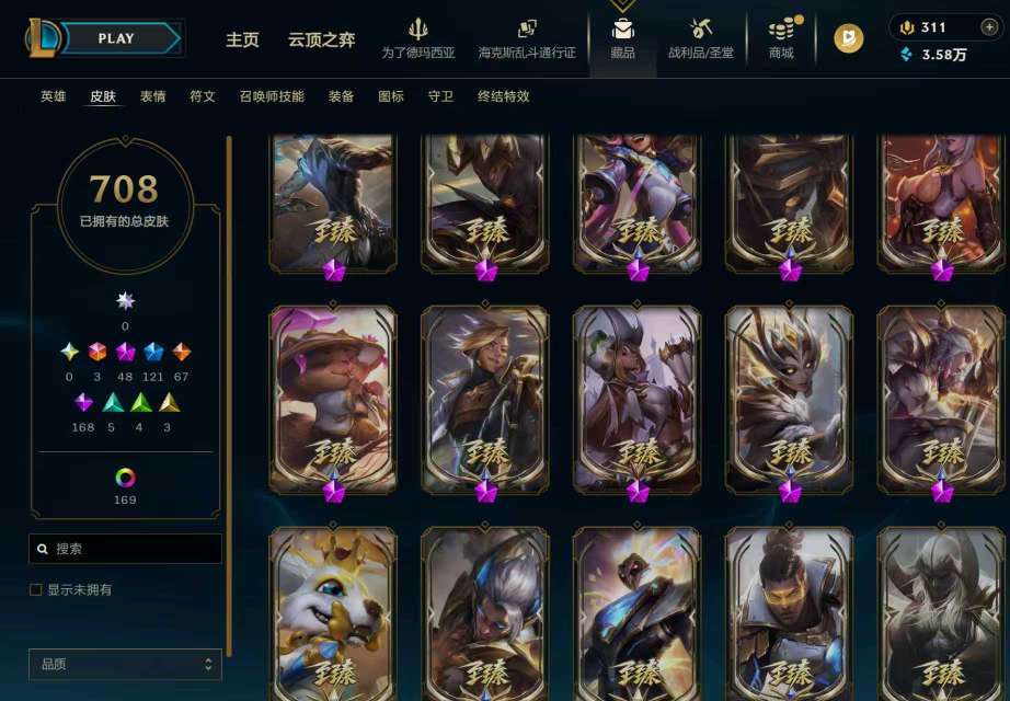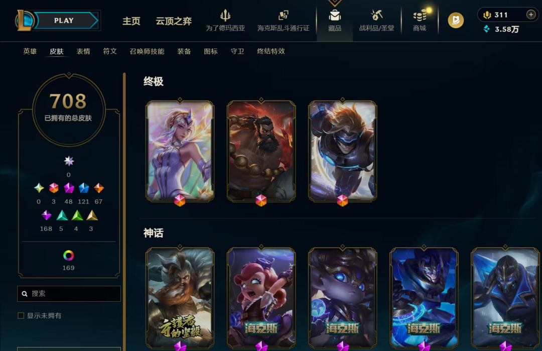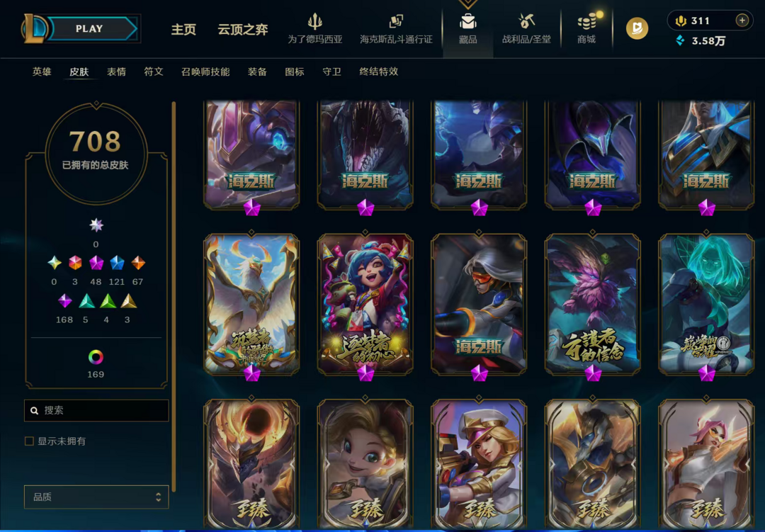 至臻32+海克斯10+冠军全套(IG/EDG/FPX/SKT)+鼠年限定等122限定,皮肤超值合集