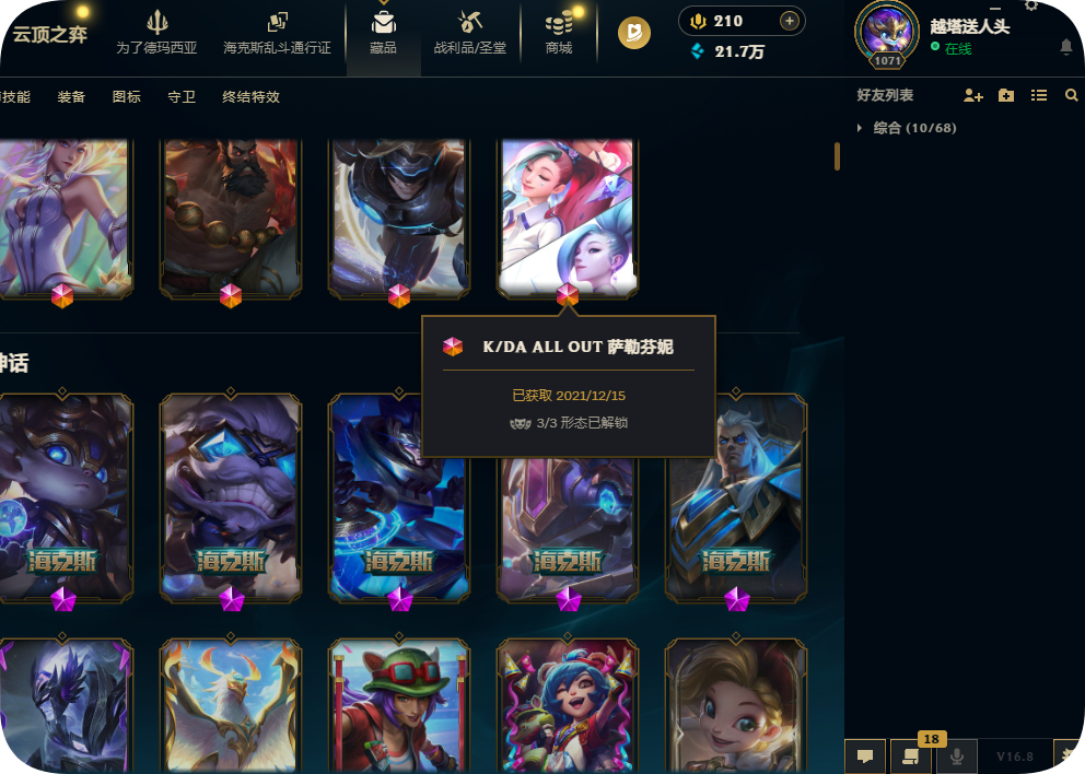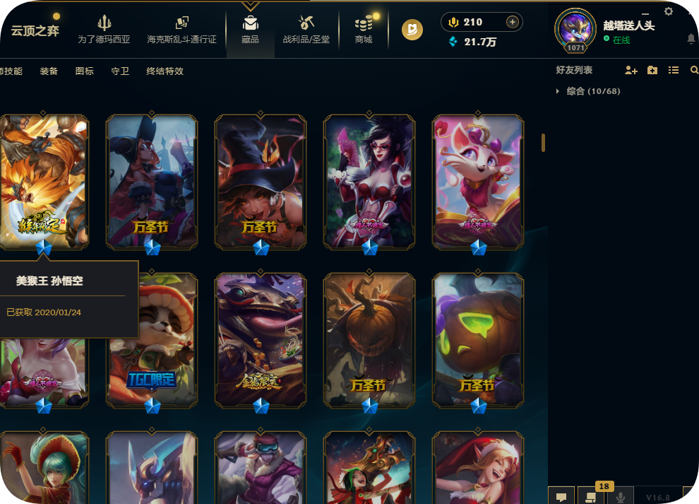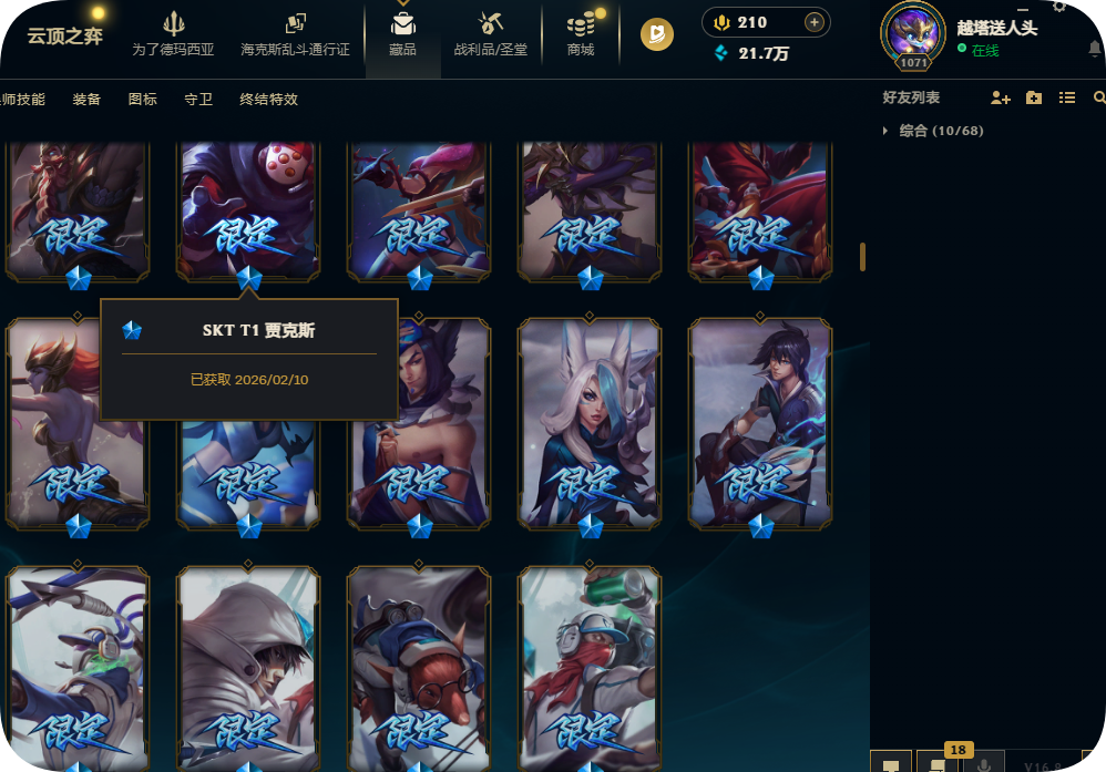 德玛西亚〓4000皮肤〓6终极全形态萨勒芬妮〓美猴王SKT〓马年踏雪寻梅亚索〓神龙瞎亚索套神王灵魂套
