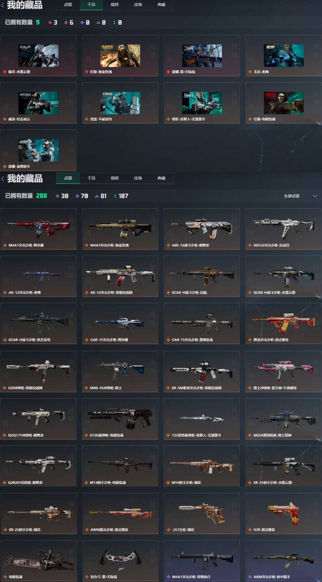 皮肤号 满体6负重 电锯刀皮 36金皮 ❤️三红皮 水墨云图麦晓雯❤️黑 天际线露娜❤️蚀金玫瑰 红狼❤️
