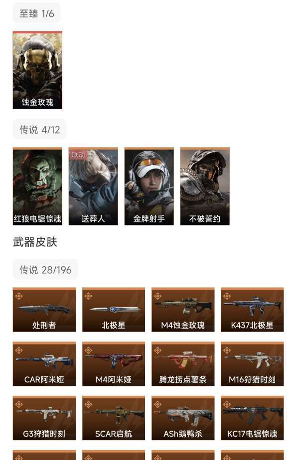 蚀金玫瑰,北极星,红狼电锯惊魂,送葬人,处刑者,4传说皮,26传说枪皮