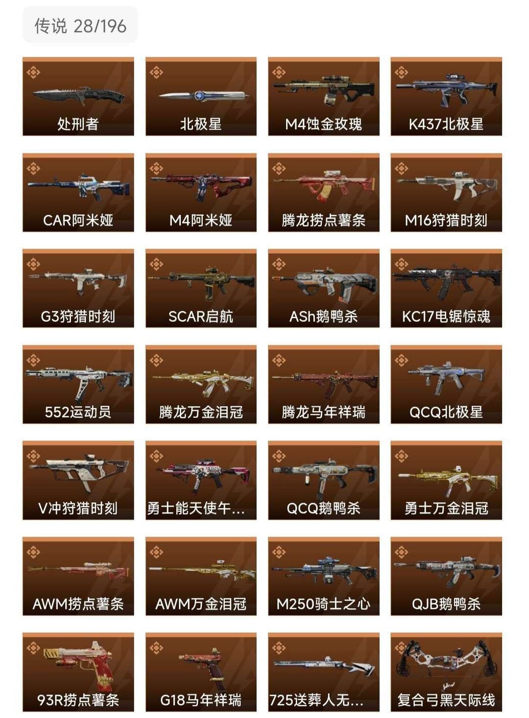 皮肤号 蚀金玫瑰,北极星,红狼电锯惊魂,送葬人,处刑者,4传说皮,26传说枪皮