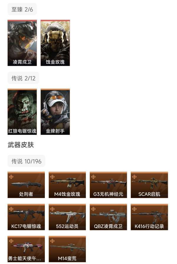 皮肤号 凌霄戍卫,蚀金玫瑰,红狼电锯惊魂,金牌射手,处刑者,赛季6格 9传说枪皮