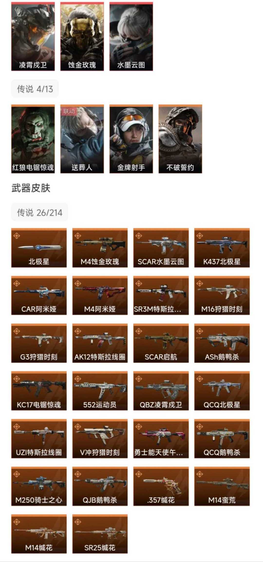 皮肤号 北极星凌霄茂卫,蚀金玫瑰,水墨云图,22款传说枪皮