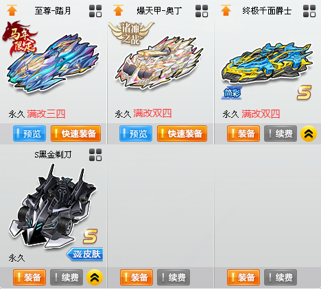 〓S〓4辆〓至尊逐日-踏月、爆天甲-奥丁、终极千面爵士 〓A〓2辆〓魔王雷诺、 〓骑宠〓1只〓小昭君+10 〓其他〓2.5W魅力、300W荣誉、紫钻5、皇族5 〓女〓20页套装〓 〓男〓20页套装〓