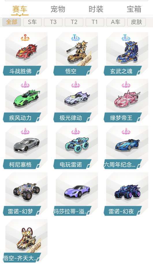 S 车 斗战圣佛 T2 悟空 A 车 雷诺机关炮全套 +无人驾驶车 柯尼塞格 满改 都有宝石