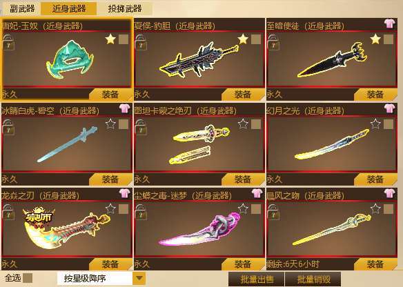 绝版女神VIP,所念皆星河炎阳子龙套,所念皆星河苍穹狮王,浪漫之约p90,49级元霸,木兰套装,炎魔幽紫,霸者套装,枭雄套装,可汗套装,阿坤弓,滨海龙吟带皮,隐麟,至暗使徒,毒刀迷梦,龙刀,月刀,诛仙剑阵,艾丽莎带坚韧,19周年炮姐满技能,等等众多武器和道具