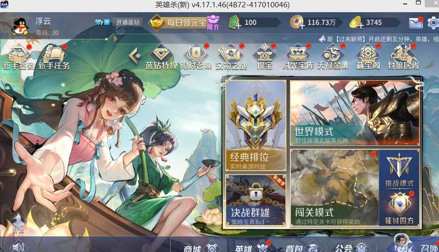 ❤️各位看好在租♦豪华蓝钻新版英雄杀专区♥此号只租新版英雄杀30级有皮肤球球游戏不要租。