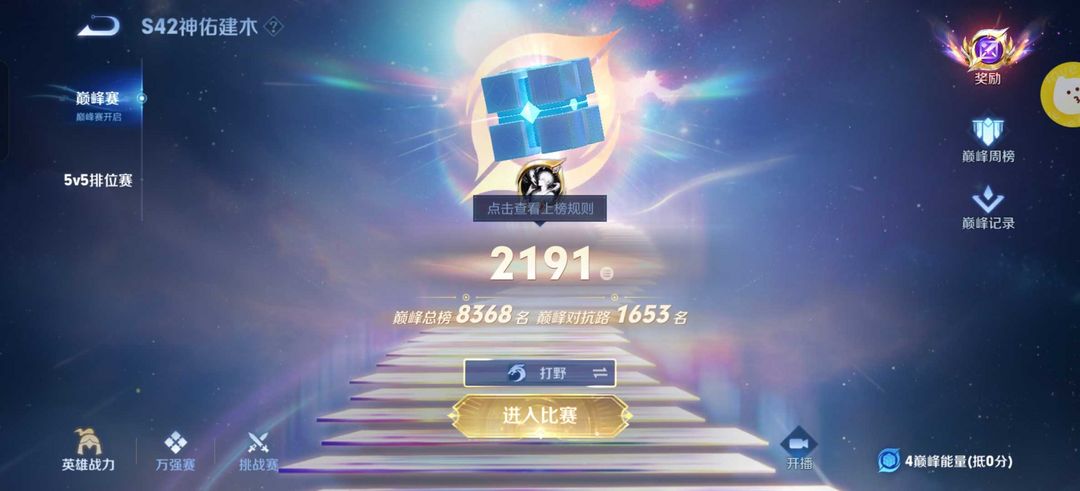 不能打巅峰赛⚡巅峰总榜万强闪电框,打野75段✨省5马超蚩咤韩信市镜✨禁打巅峰赛