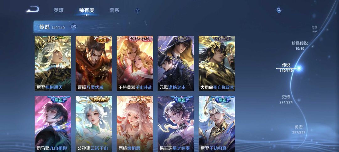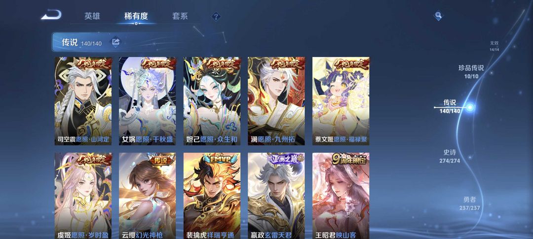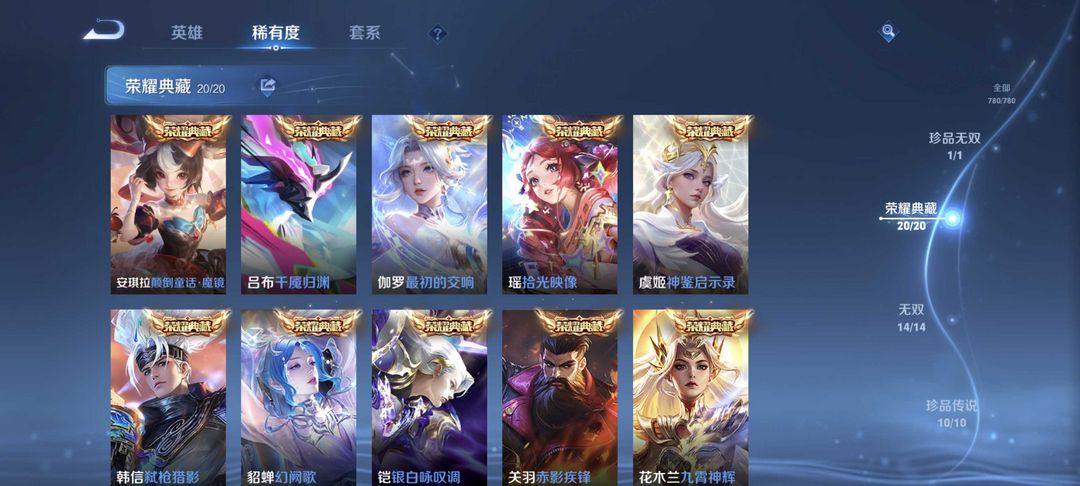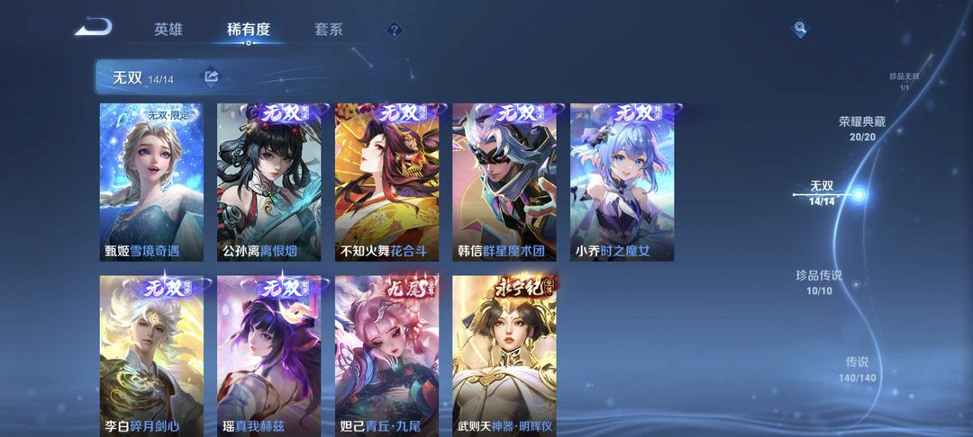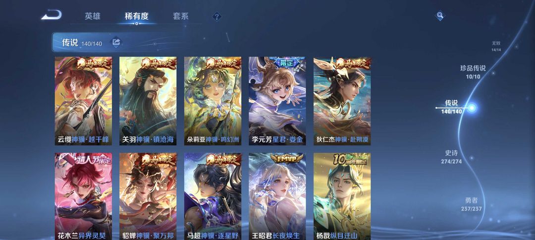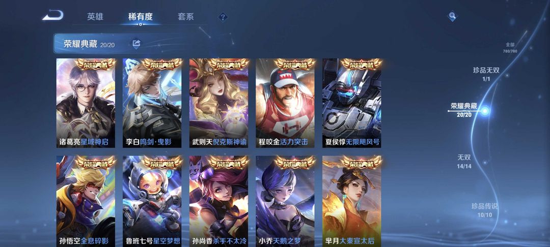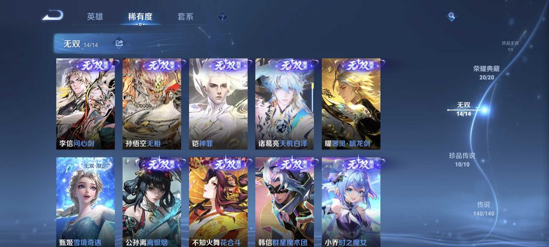 无双贵族✨全皮肤✨满荣耀典藏✨满无双限定✨李信问心剑✨猴子无相✨吕布千魇归渊✨五马限✨安琪拉典藏
