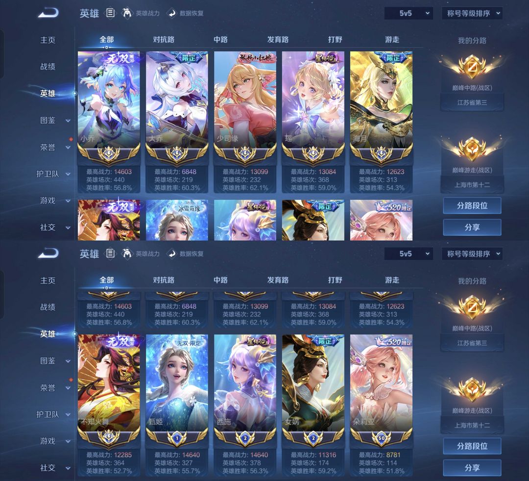 二月6个在榜小国标小乔西施甄姬女娲海月火舞❤️巅峰1k9女号+国服瑶少司缘朵莉亚小乔瑶全皮肤~