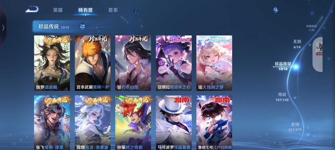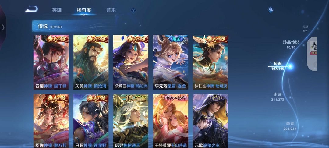 本游戏账号: V10用户,基础段位:非凡王者,英雄多,皮肤多。典藏皮肤18个,感受典藏皮肤带来的优质体验快感,FMVP皮肤12个,尽情享受FMVP皮肤带来的主角光环, 私人所属英雄皮肤有:伽罗