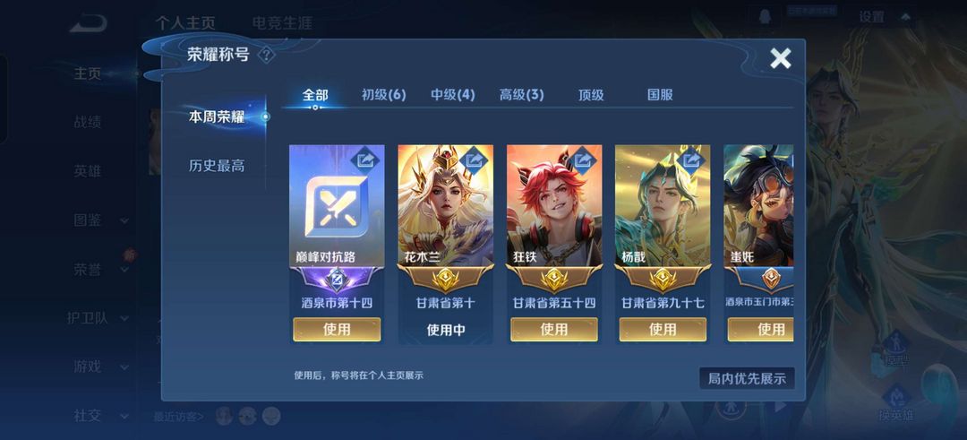 本周巅峰万强闪电框⚡正式服在榜省⑩花木兰⭐!省狂铁/杨戬⭐可排位禁巅峰