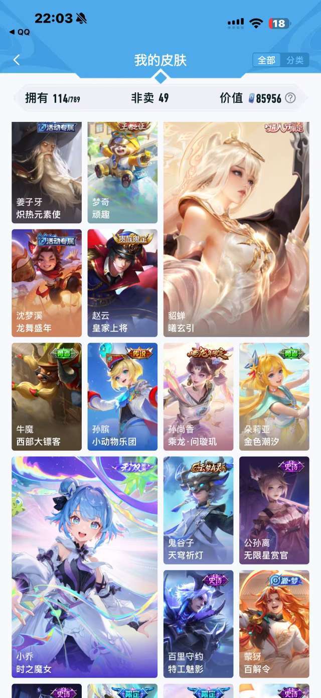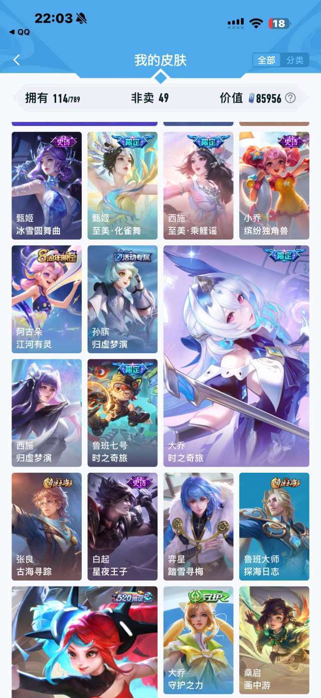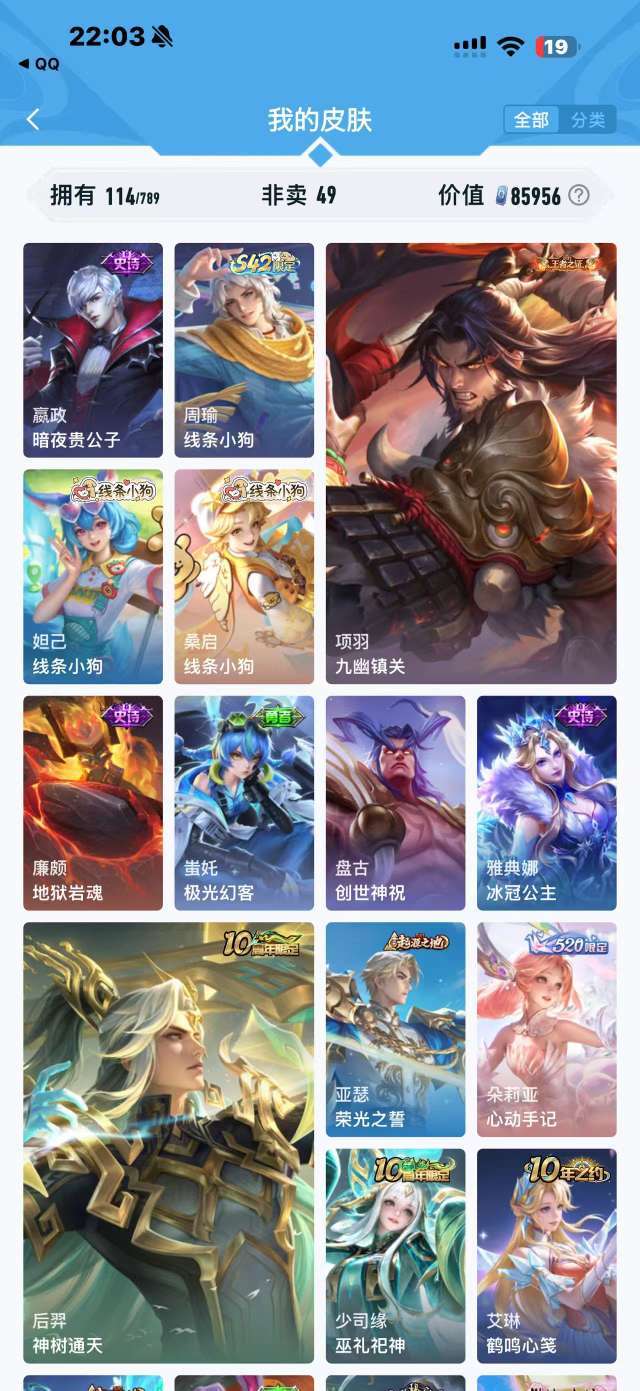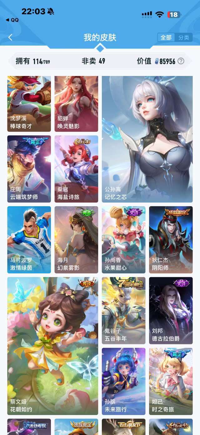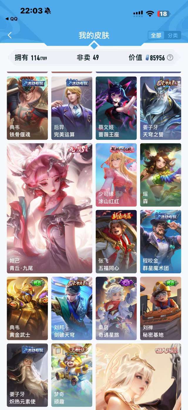 代打,故意撤单,死一家!!! 无双皮肤:青丘·九尾,时之魔女 热门限定:乘龙·问璇玑,时之奇旅,暗影游猎,云端筑梦师,时之奇旅,巫礼祀神,涂山容容, 限定传说:暗夜猫娘,诗语江南,胖达荣荣,花朝如约,遇见神鹿,小动物乐团,朵莉亚心动手记