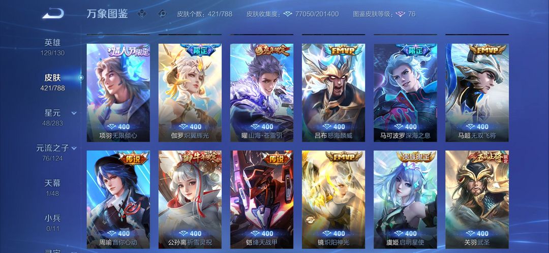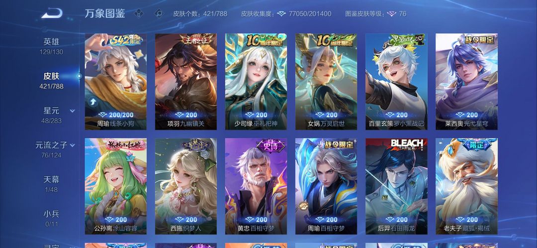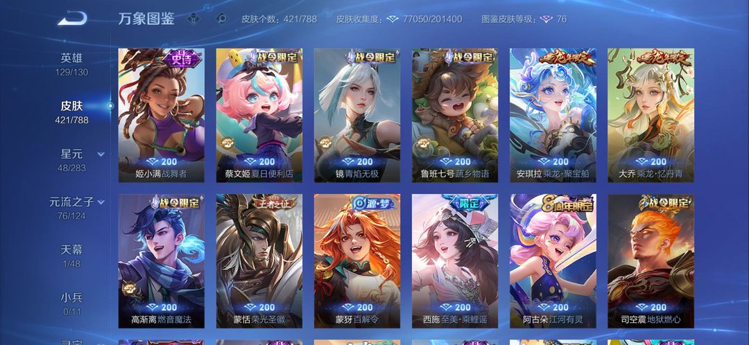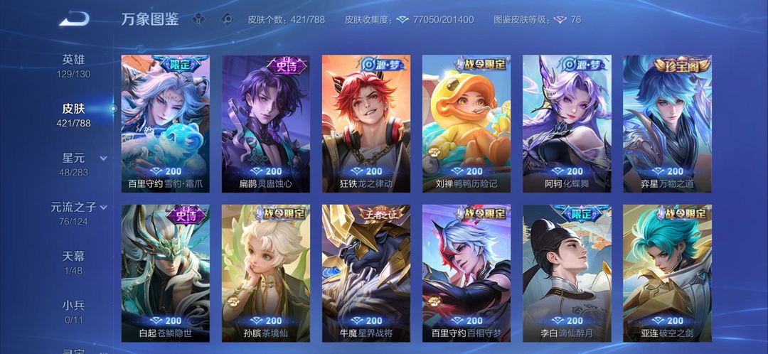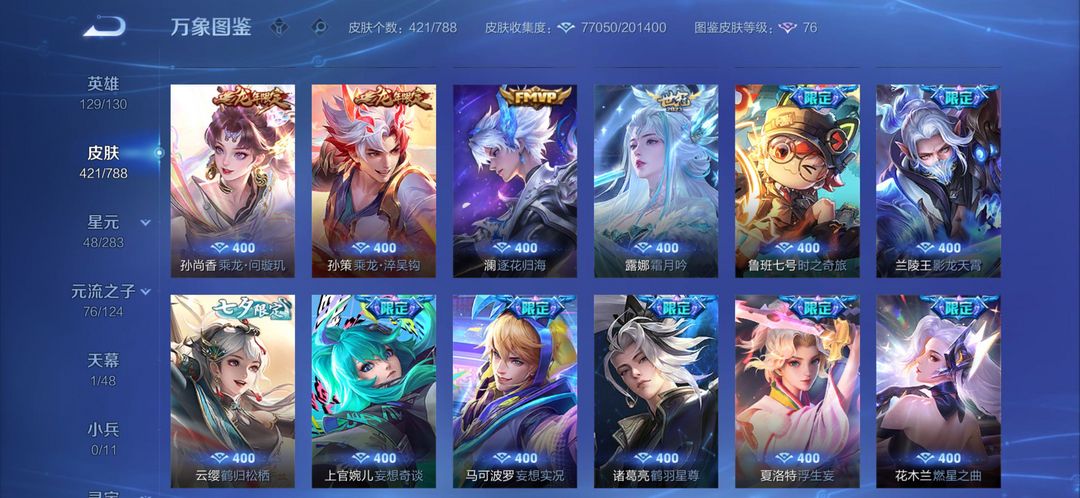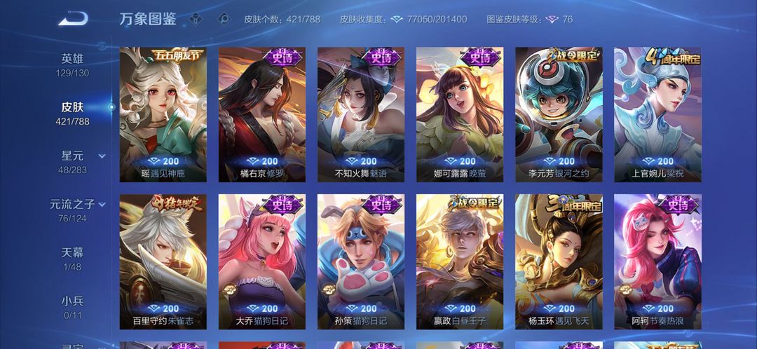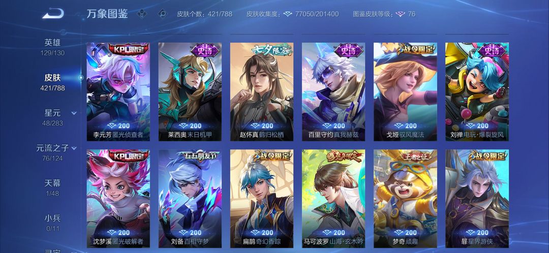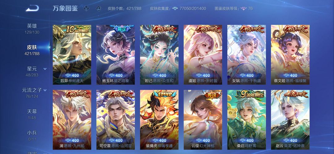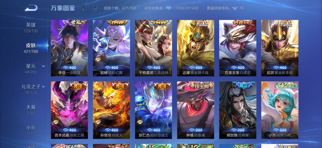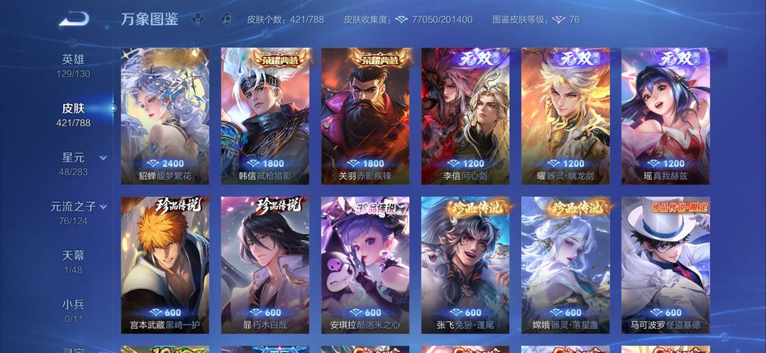 v9王者高氪号出租✨421皮肤|2典藏3无双|限定联动全英雄129/130,热门皮肤随便用