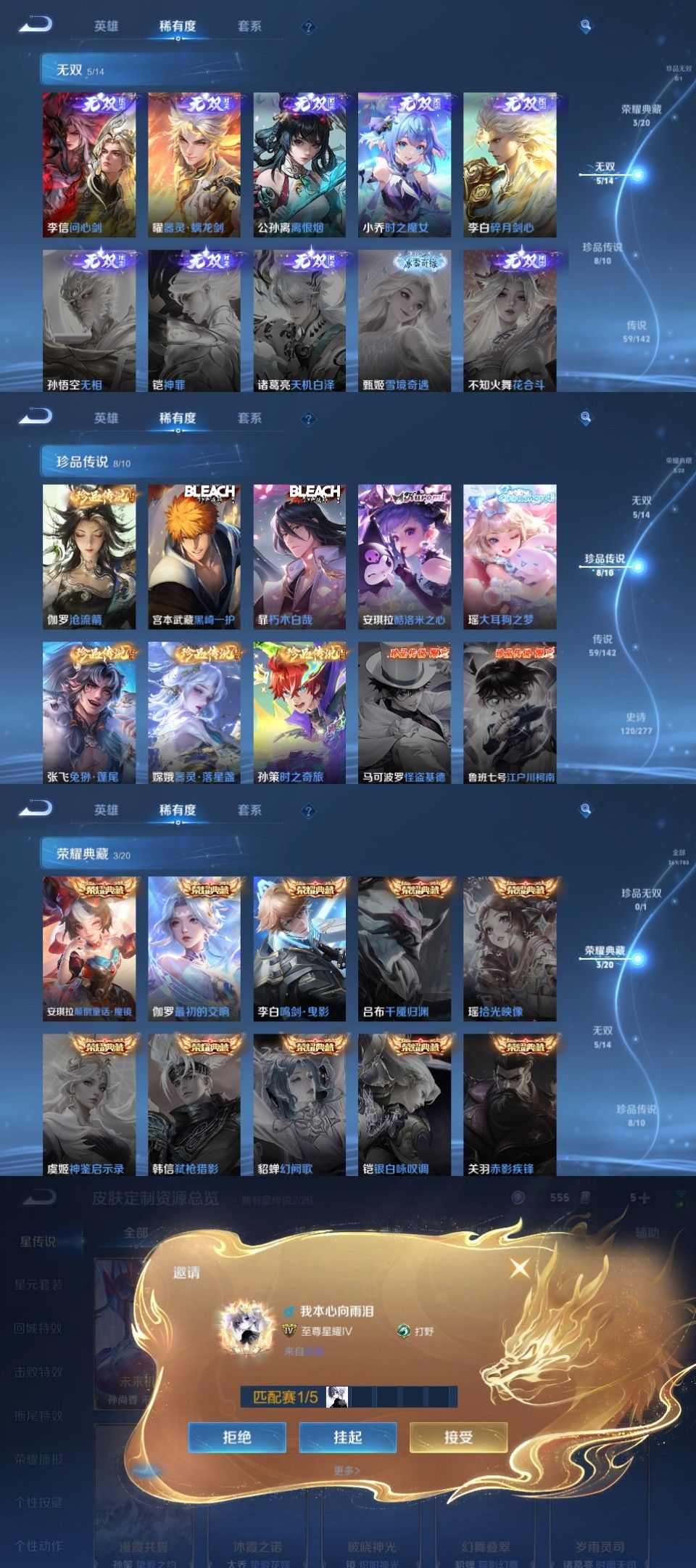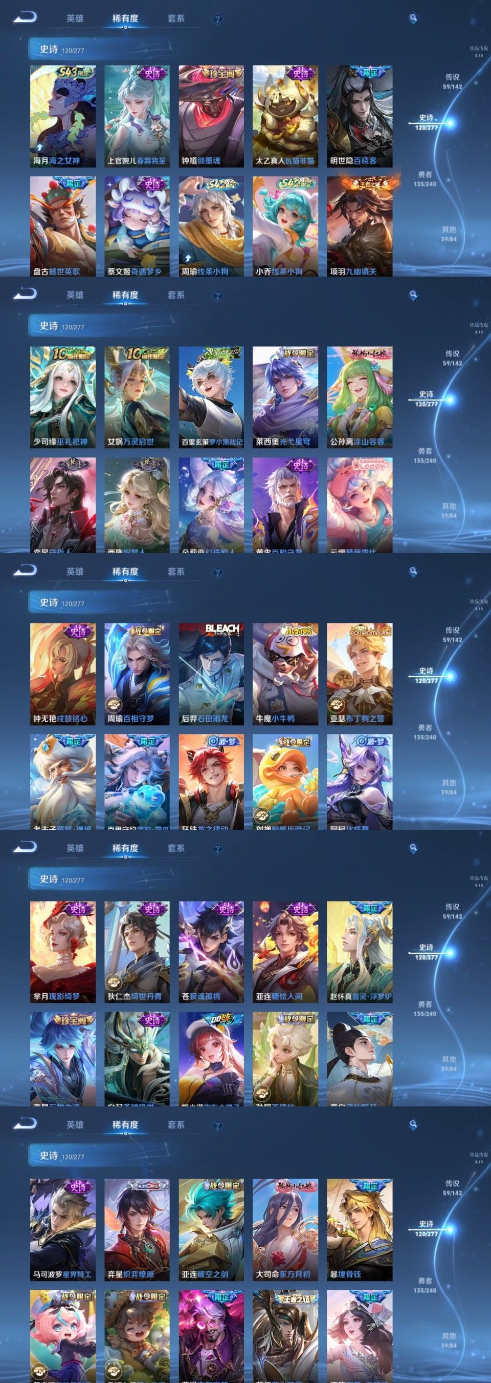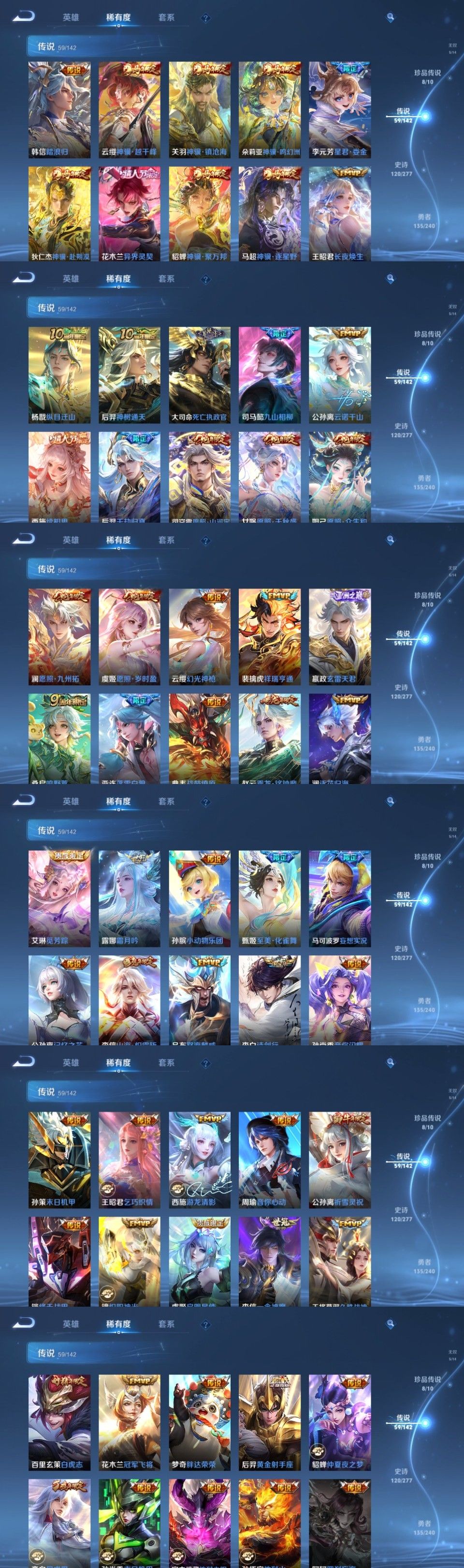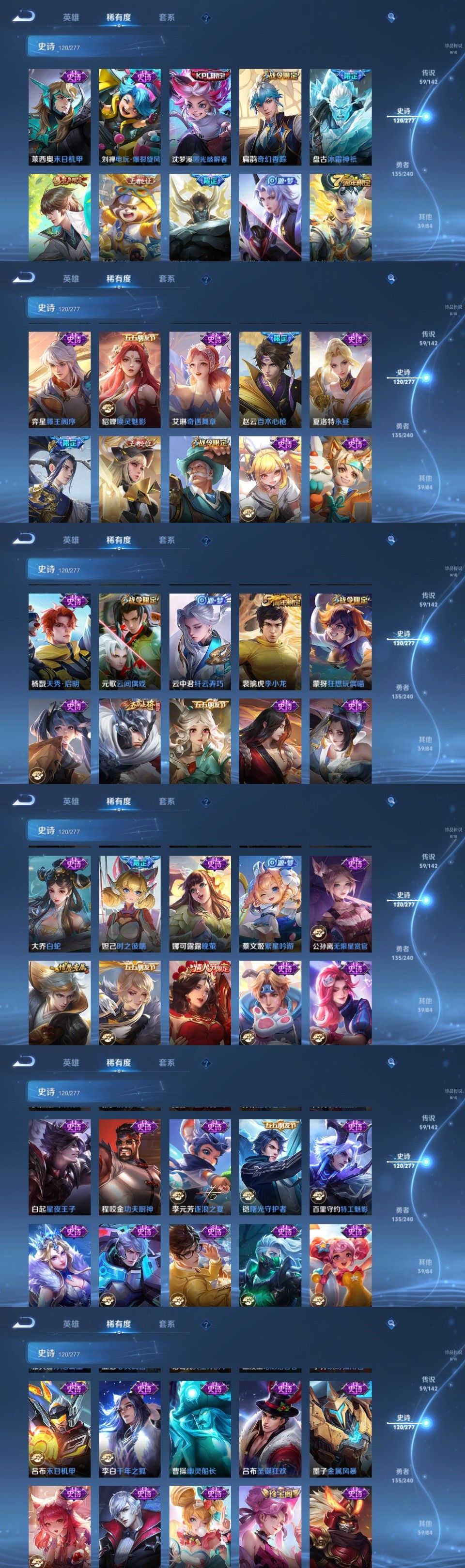 颠倒童话魔镜问心剑#全马限17年限#沧流箭酷洛米之心5无双3水8珍传59传17年限2星元116史诗#星君娄金黑崎一护#兔狲蓬尾时之奇旅#器灵落星盏大耳狗之梦#朽木白哉#公孙离_离恨烟、李白_碎月剑心、李信_问心剑、曜_器灵螭龙剑、小乔_时之魔女李白_鸣剑曳影、安琪拉_颠倒童话魔镜、伽罗_最初的交响宫本武藏_地狱之眼、后羿_千劫归真、赵云_乘龙铭钟鼎、百里玄策_白虎志、马可波罗_妄想实况、李元芳_星君娄金、嬴政_玄雷天君、马超_神骥逐星野、虞姬_愿照岁时盈、女娲_愿照千秋盛、狄仁杰_神骥赴朔漠、韩信_踏浪归、公孙离_记忆之芯、西施_游龙清影、孙尚香_音你闪耀、云缨_幻光神枪、王昭君_乞巧织情、亚连_落雪白狼、甄姬_至美化雀舞、李白_诗剑行、李白_凤求凰、孙悟空_地狱火、李信_山海炽霜斩、云缨_神骥越千峰、大司命_死亡执政官、西施_续相思、裴擒虎_祥瑞亨通、澜_逐花归海、孙膑_小动物乐团、孙策_末日机甲、公孙离_云诺千山、李信_一念神魔、艾琳_觅芳踪、司空震_愿照山河定、关羽_神骥镇沧海、干将莫邪_久胜战神、镜_炽阳神光、梦奇_胖达荣荣、司马懿_九山相柳、虞姬_启明星使、王昭君_长夜焕生、