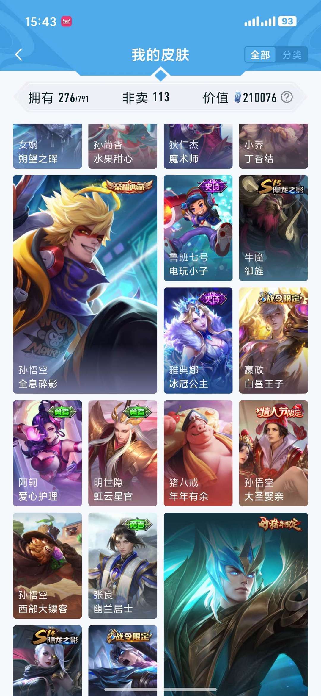 可排位,猴子的全息碎影 夏侯惇的无限飓风号,李白的凤囚凰 后羿的黄金射手座 至尊宝等优质皮肤