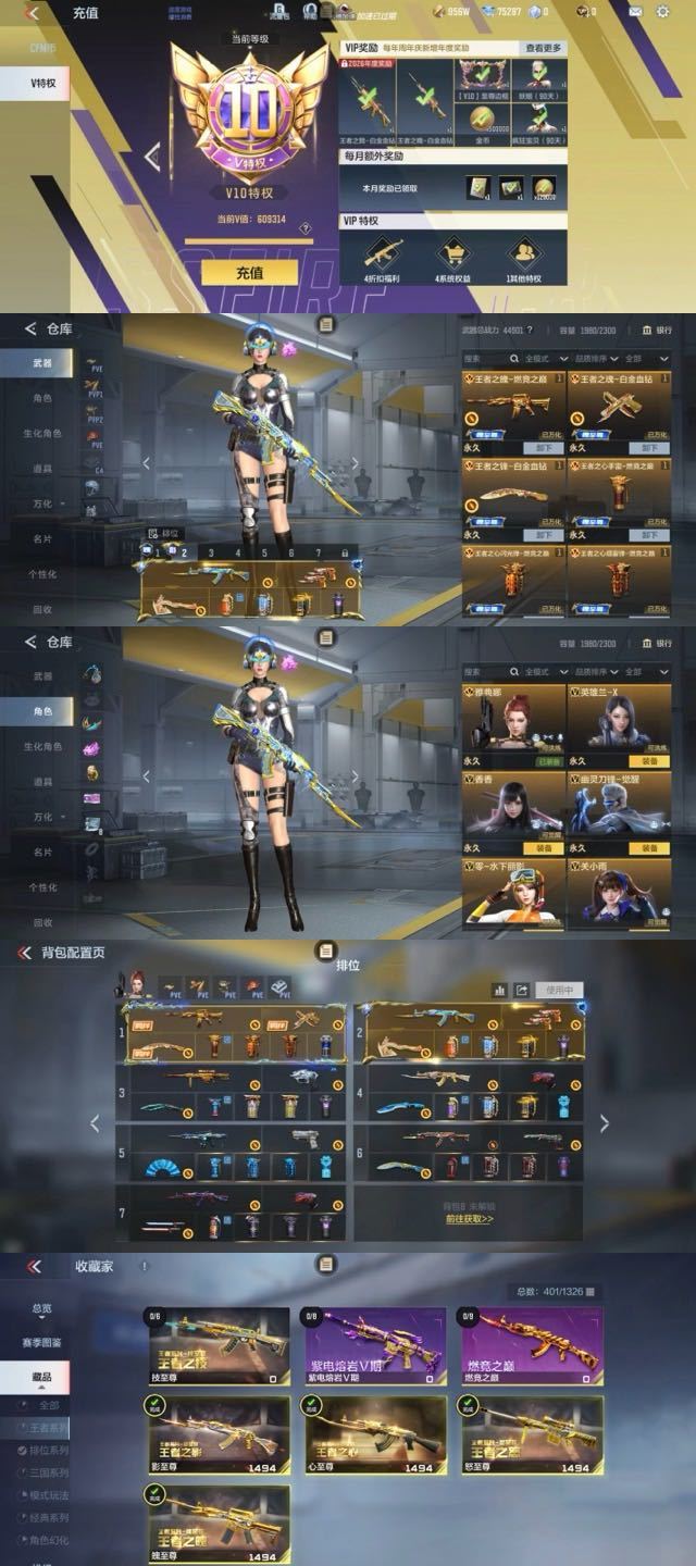 本游戏账号:英雄武器231个, 王者武器6个。军衔: 荣耀元首,段位: 枪圣,拥有:樱,葵,零,等8个角色。装备齐全让你拥有完美游戏初体验,特殊装备有:激光毁灭者Ⅲ、王者之光、巴雷特-毁灭、巴雷特-雷霆、沙鹰-竞技战魂、G36-竞技战魂、黑骑士手雷、火麒麟烟雾弹、黑武士手雷、黑武士烟雾弹、黑武士闪光弹、王者之魂、黑骑士烟雾弹、黑骑士闪光弹、火麒麟手雷、双截棍-金色蔷薇、嗜血金鲨、剑齿虎、地狱烈炎、尼泊尔-机械纪元、AA12-竞界荣光、MK5-极光、麒麟刺、尼泊尔-星象、王者之击、AWM-裁决、王者之心、王者之魄-冠军珍藏、尼泊尔-雷霆、王者之迹、AK47-机械迷城、左轮-黑武士觉醒、火麒麟闪光弹、暗杀神、手斧-竞技战魂、AWM-妙才、巴雷特-极光、沙鹰-火麒麟、王者之影、MK5-机械纪元、幻兽闪光弹、幻兽烟雾弹、巴雷特-变色龙、死神烟雾弹、死神闪光弹、沙鹰-波塞冬、M4A1-机械迷城、关小雨、等,随意畅选。
