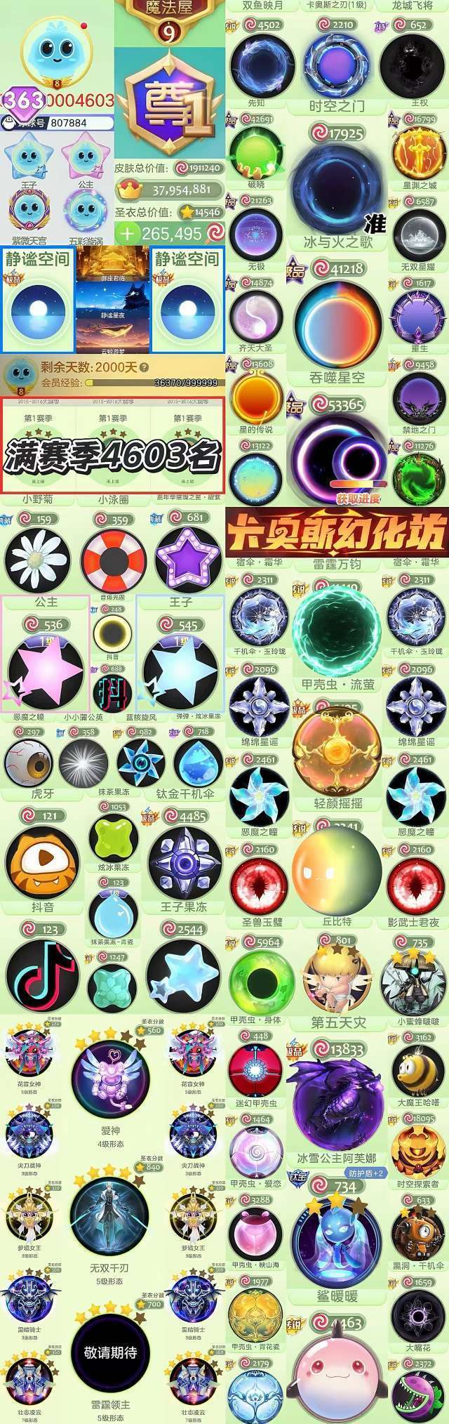 球球大作战真实满赛季4603 王子公主 钛金千机伞轻颜瑶瑶十字架流萤甲壳虫红色甲壳虫