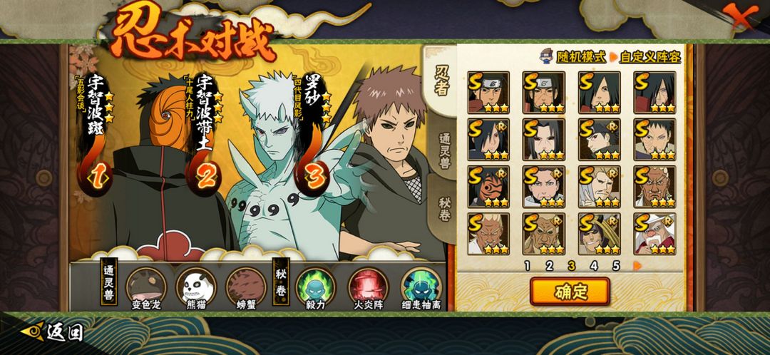 35S须佐卡卡西★忍战艾★秽土解斑★永恒佐助★忍战樱★九尾鸣人★青年长门已秒★青年雷影★忍战带土★达鲁伊★青年水门★秽土柱间★秽土鼬★黑土★仙人兜★秽土斑★白面具★熊猫二尾螃蟹★新春鼬,新春水门,泳装南,三船★秽土二代三代