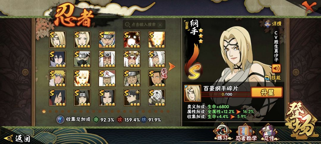 ⭐白面解斑⭐九喇嘛⭐忍战带土⭐红夜带土⭐创立柱间⭐漂泊小南⭐侠影纲手⭐紫狗⭐宁次长十郎青水博人⭐战力71