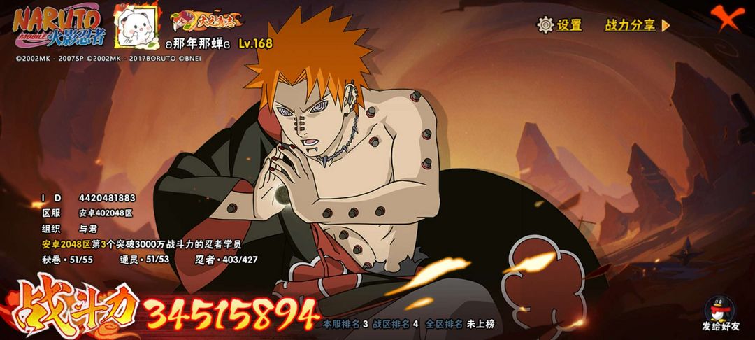 全点券A❤️55S101A❤️战区第四3400万❤️全忍者403❤️青春哥漂泊带土❤️全98氪金通灵
