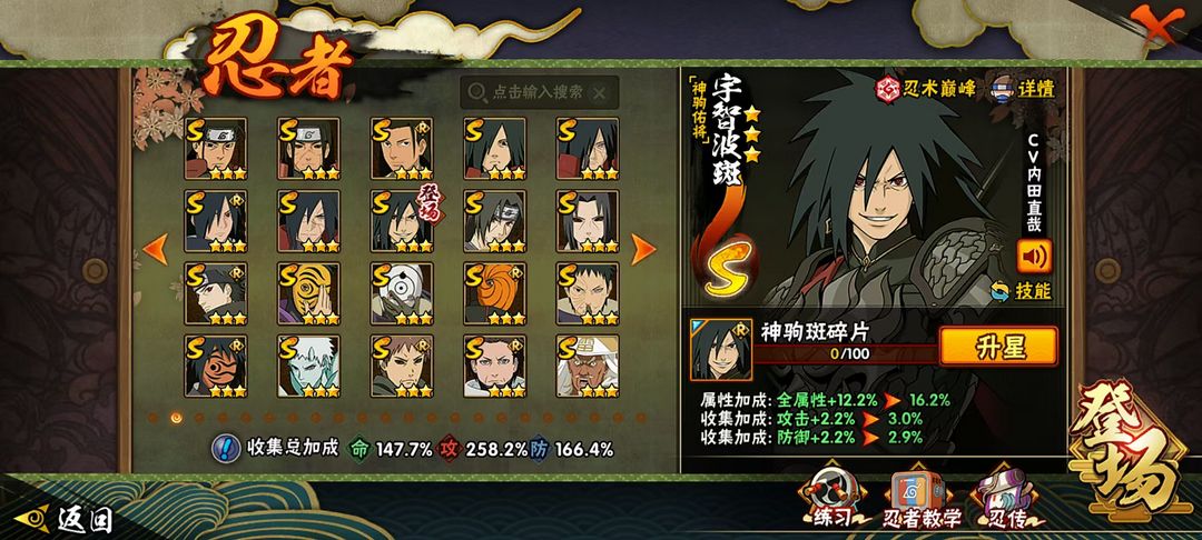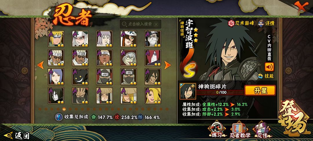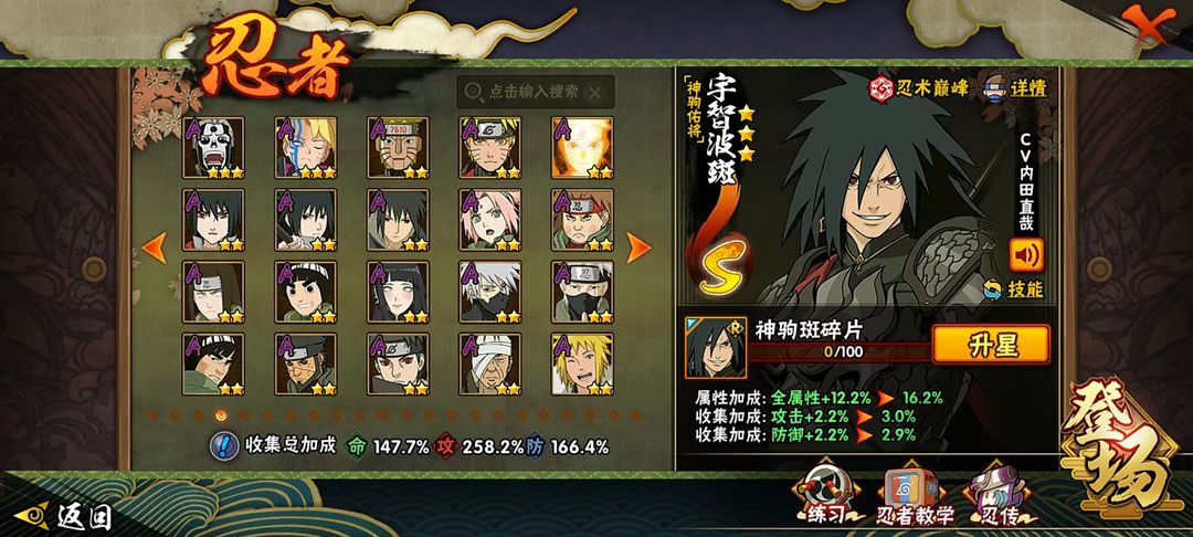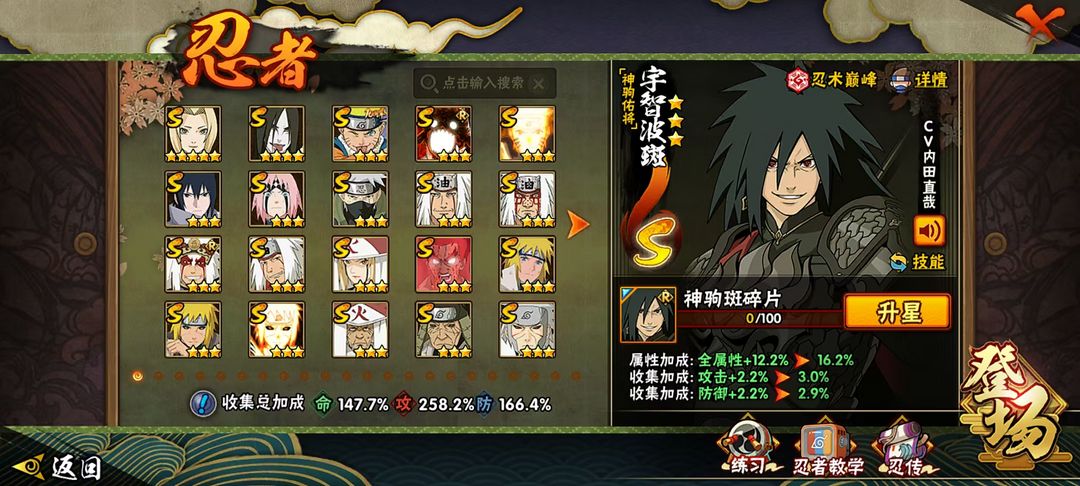 迈特凯「死门」;千手柱间「秽土转生」;无「二代目土影」;大野木「忍界大战」;纲手「百豪」;“宇智波斑”「白面具」;佩恩「天道」;艾「四代目雷影」;自来也「舞之豪杰」;宇智波斑 「秽土转生·解」;神秘面具男「红夜之刃」;旗木卡卡西「须佐能乎」;宇智波鼬「秽土转生」;千手柱间「木叶创立」;宇智波斑「木叶创立」;漩涡鸣人「暴怒·第六尾」;大筒木舍人「最终章」;罗砂「四代目风影」;宇智波鼬「须佐能乎」;千手柱间;自来也「仙人模式」;千手扉间「秽土转生」;艾「忍界大战」;长门「秽土转生」;漩涡鸣人「九喇嘛连结」;波风水门「秽土转生」;佩恩·天道「超」;猿飞日斩「秽土转生」;宇智波斑「秽土转生」;宇智波佐助「永恒万花筒」;大野木「三代目土影」;大筒木桃式;药师兜「仙人模式」;宇智波止水「须佐能乎」;宇智波带土「忍界大战」;大筒木金式;自来也「传说中的三忍」;春野樱「忍界大战」;波风水门「九喇嘛连结」;马斑;六道带土