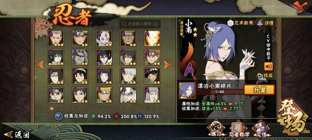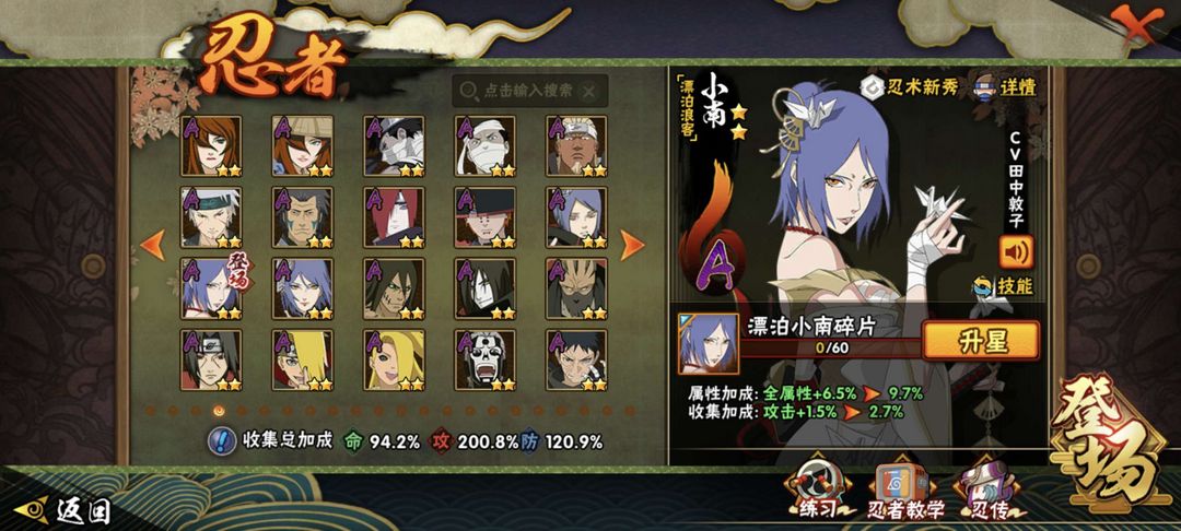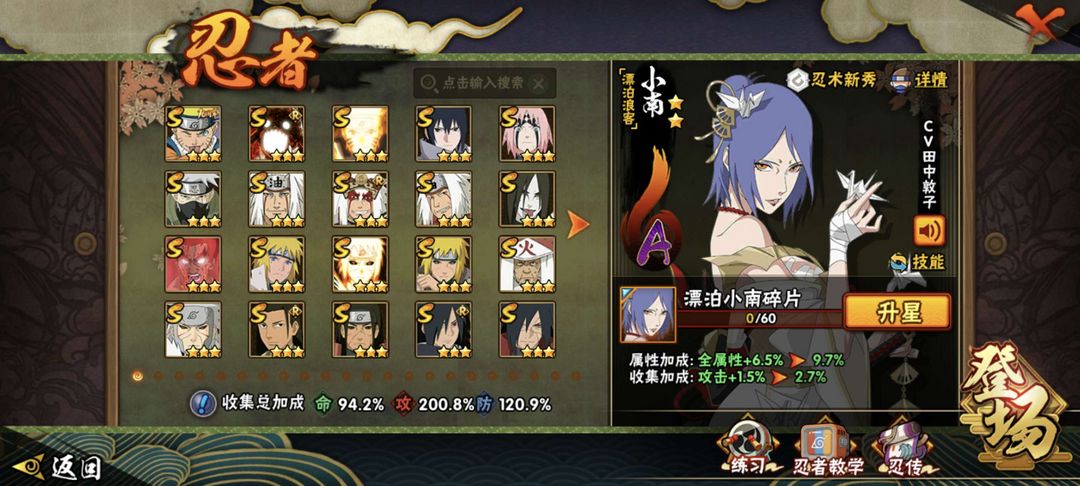 1300w战力。高招忍者会后续补上。氪金通灵暂无,慢慢补old忍者