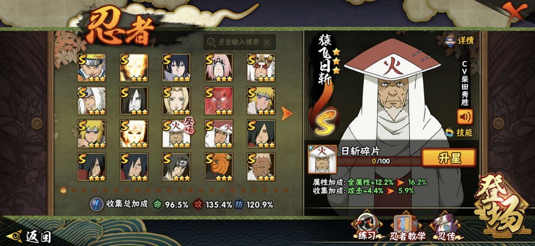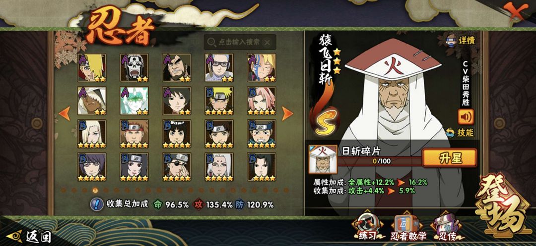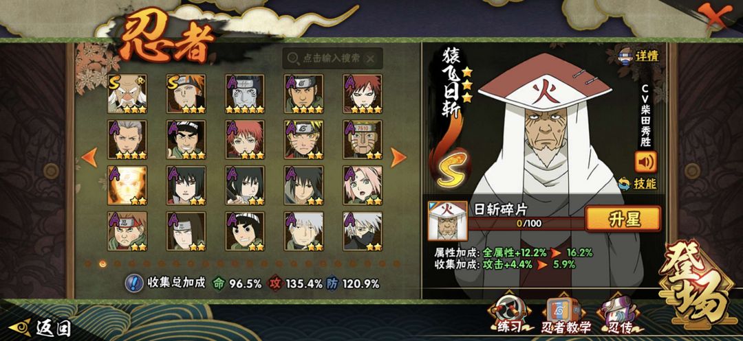 22个S忍,46个A忍,93个B忍,65个C忍。热门忍者全都有,等你体验