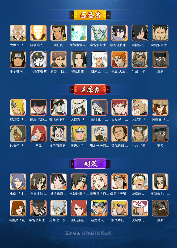忍法帖除金银角和三代雷全有,大部分热门直购A都有