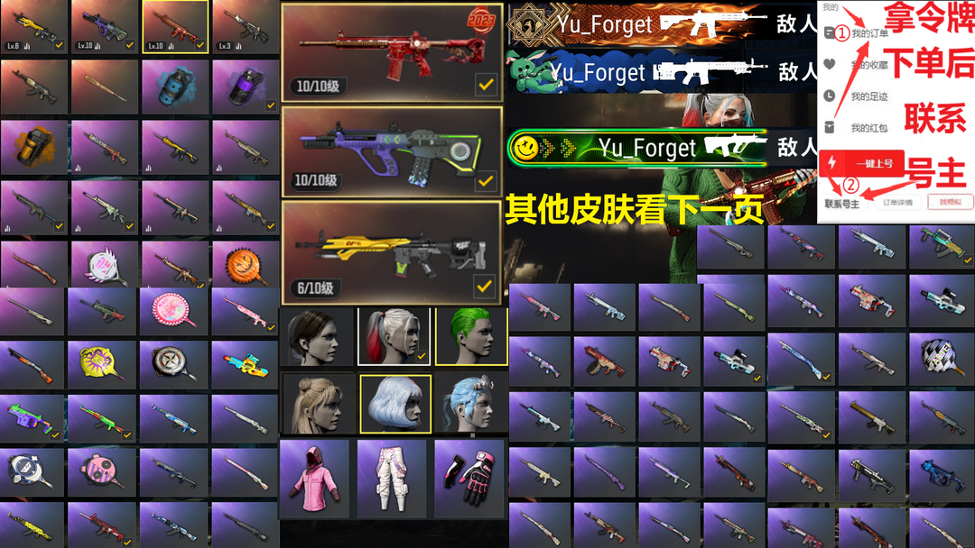 10辆跑车神器✅⑩朱雀M4⑩AUG霓虹⑥小兔MK恶魔ACE小丑双头阿斯顿马丁柏林战神马尾金面具可排位