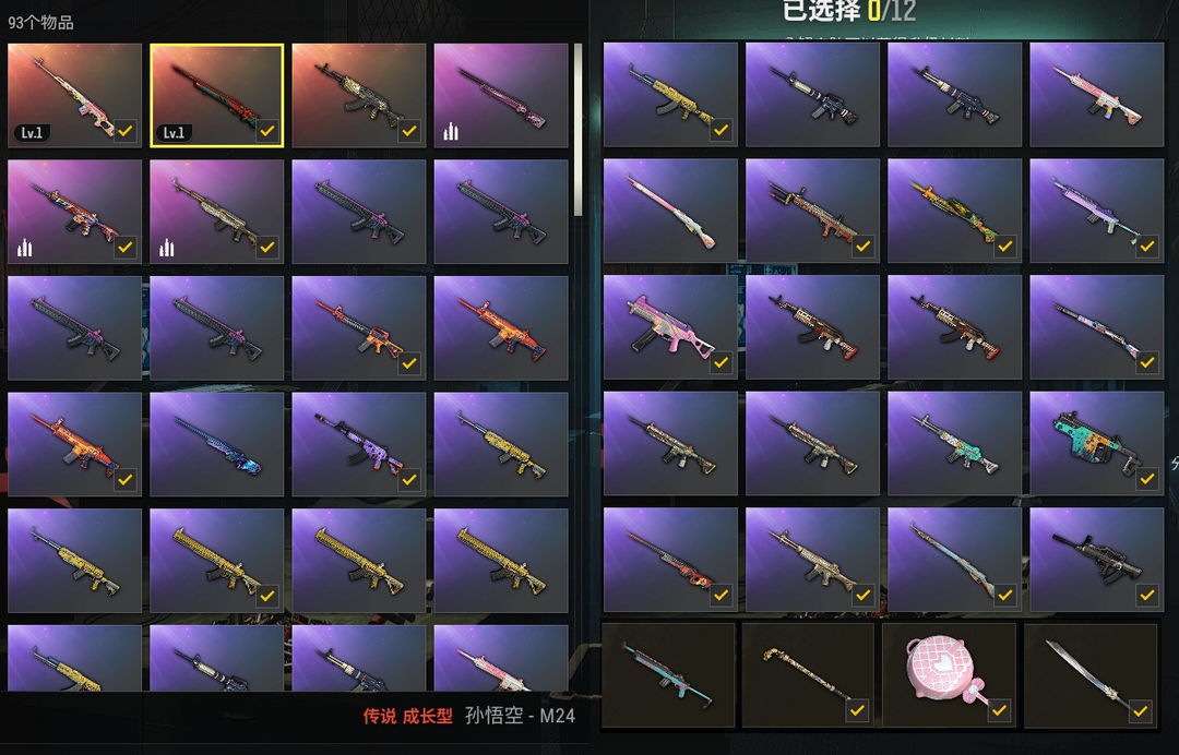 满500级✅2神器✅悟空M24✅粉梦德拉贡✅星期天M4✅蒸汽SKS✅粉梦M24✅PCS2套装✅雪色美