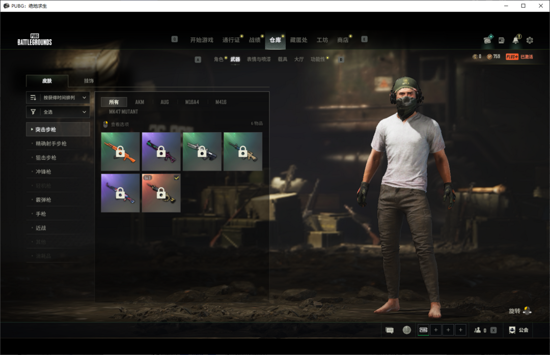 ①级时光使者M4✨灵魂枷锁MK47✨银河武装SKS✨渔夫帽柏林觉醒长裤✨兰博基尼服饰套✨黄金齿轮M76PUBG信条马甲镀金AWM✨老兵队长套✨小兔学院生化服套✨小兔学院吉祥物套