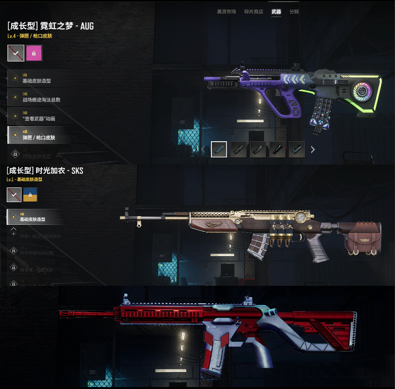 可排位/拉风龙大礼包✌阿斯顿马丁【三成长型-④霓虹之梦AUG-无信号M416-时光加农sks】黑鬼\\\\渔夫帽\\孙悟空AKM✌小兔M416✌亚特蒂斯AUG✌黄道猎手SKS✌小兔套