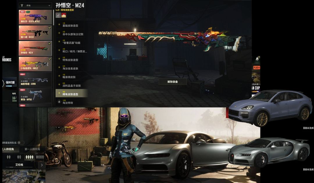 二级密码987654可排保时捷卡宴+豪华布加迪跑车⑨级孙悟空M24⑥猪八戒M416②小兔MK①美杜莎
