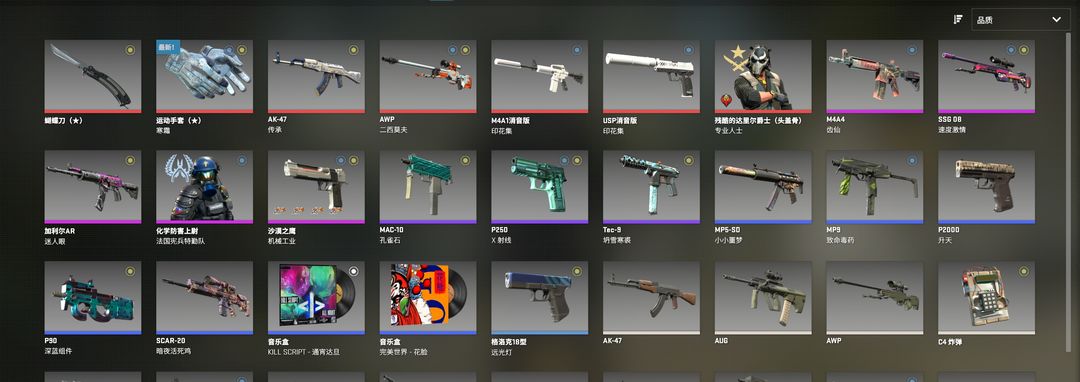 可完美/5E/原版蝴蝶刀/寒霜手套/传承ak/二西awp/