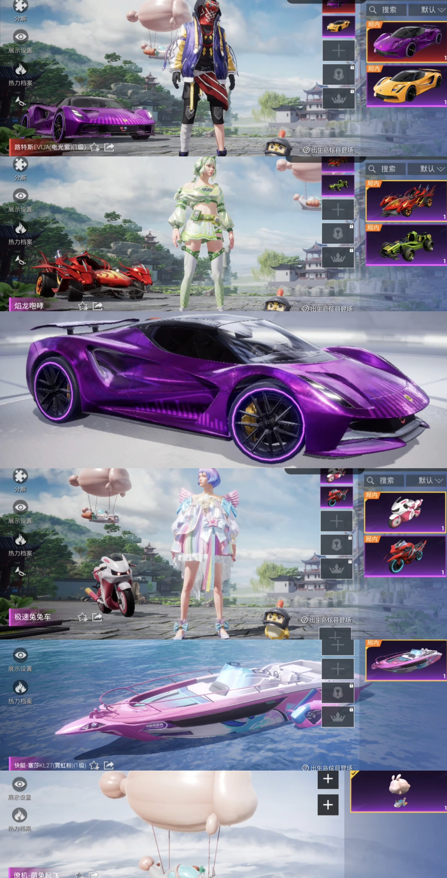 电光紫路特斯跑车❤9载具❤15特效❤16粉❤萌兔起飞❤极速兔兔车❤风花雪月❤双刃魅影
