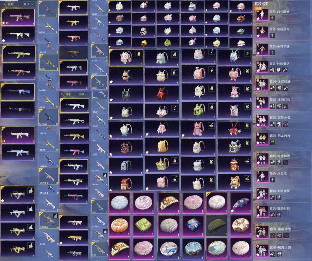 喵/SCAR-L-甜梦小狐/M416-心之恋语/平底锅-林间仙鹿/MG3-洛神天依