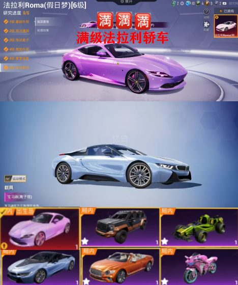 ⑧满级法拉利轿车⚡1币宝马跑车⚡木乃伊+新101⚡满级M4A1⚡6车