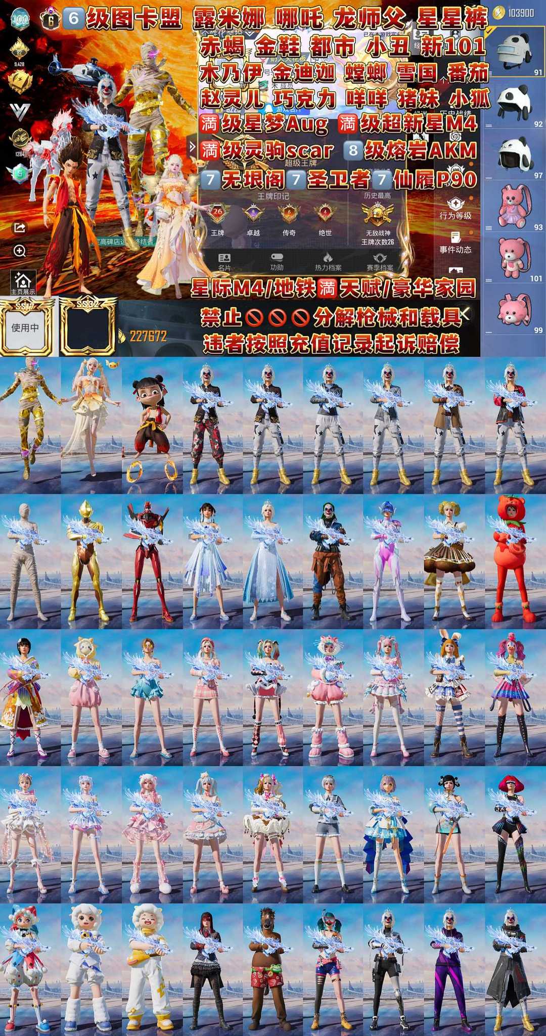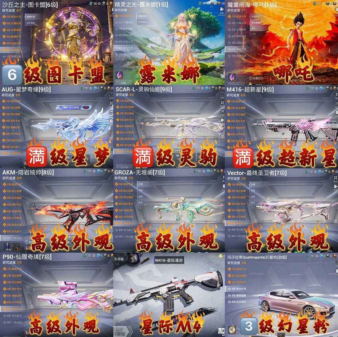 全网至尊星星裤龙师傅/6级图卡盟露米娜哪吒/11把9级枪满级灵驹星梦超新星无哏阁熔岩/S1小丑金鞋