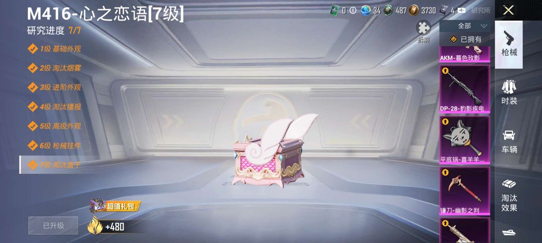 和平精英安卓号,热力值7万+,7级M416心之恋语、红装艾丽娅、双载具皮肤多可排位禁止开挂违规操作.