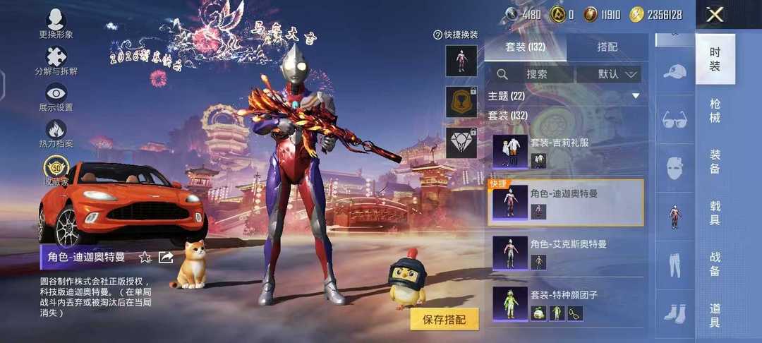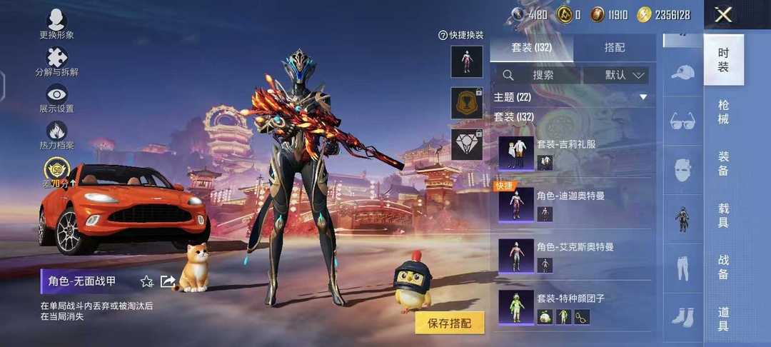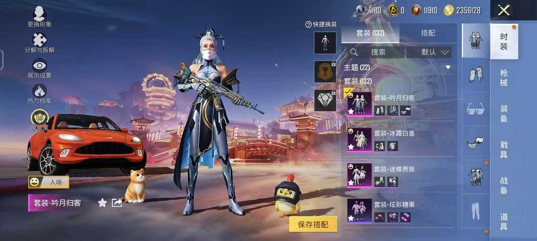 巡查衣,阿斯顿马丁,荧光虫舞飞行器,m416风花雪月7级,猛男激战未来7级,吟月归客套,迪迦